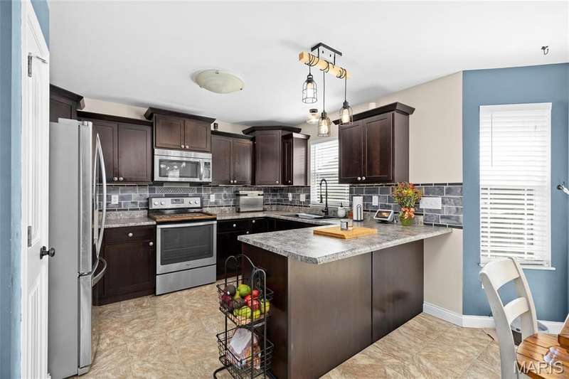Do not miss this welcoming 5 bedroom, 3 bath home on cul-de-sac lot in Mascoutah! Perfect for today's lifestyle. As you enter you find a large office space with built-in cabinetry and desks. which flows to open main area of first floor. Spacious kitchen with ample cabinetry, solid surface tops, breakfast bar with separate beverage bar, stainless appliances and dining area, family room with gas fireplace with access to 14 x 14 deck and privacy fenced level rear yard complete this gathering space. Upper level offers primary bedroom with vaulted ceiling, private bath, with garden tub for your relaxation and separate shower. 4 additional bedrooms provide space for all. Lower level has 9 ft ceilings, rough in plumbing for bath and egress window for potential future needs and ample storage. 3 car garage and driveway space. Highly desired school district with convenient access to Scott Air Force Base, and Interstate for easy St. Louis commute. Seller is offering a $5,000 flooring allowance with an accepted contract.. Call for you tour today!
