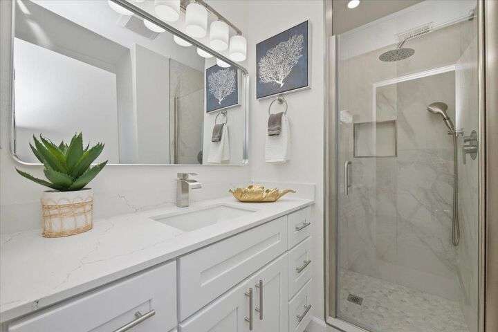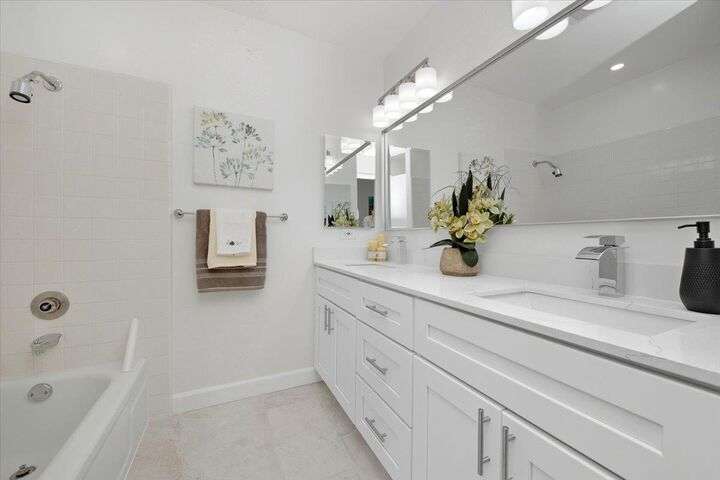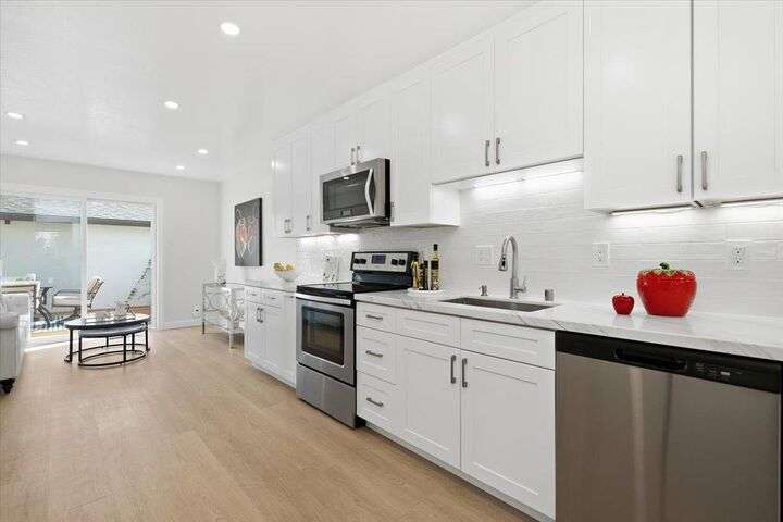 Welcome Home to Camino Del Prado in the Heart of Sunnyvale! This rarely available 3-bedroom, 2.5-bath townhome features 1,552 sq ft of beautifully updated living space in a desirable community setting. Step inside to an open-concept floor plan featuring abundant natural light, a formal tile entry, and a spacious living and dining area with a fireplace - perfect for entertaining or relaxing evenings at home. The updated kitchen shines with new cabinetry, quartz countertops, new flooring, recessed lighting, under cabinet lighting & stainless appliances, seamlessly connecting to a bright and functional kitchen/family room combo. Enjoy 2 indoor-outdoor living areas featuring a private front courtyard with deck and a fenced backyard & patio, just off the living room. Upstairs, you'll find a spacious primary suite with a large closet and beautifully remodeled bathroom, along with two additional generously sized bedrooms and an updated hall bath. Additional features include a formal entry, freshly painted interior, dual pane windows, new luxury vinyl flooring and detached 2-car garage. Community amenities include a pool, spa, clubhouse and playground. Prime Sunnyvale location - with easy access to shopping, dining, schools and amenities. Don't miss out on this wonderful home!