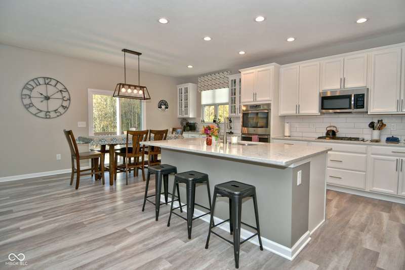 If you're looking for a move-in ready home, this is it! This spacious 5BR, 4 1/2 bath residence offers ample living space for a growing family. Main level features a generous bedroom with an attached full bath. ideal for guests, in-laws or a private retreat. Upstairs are 4 more bedrooms and a loft. All bedrooms have walk-in closets. Huge master suite with trey ceiling, enormous walk-in closet, double sinks and walk-in shower. The open-concept living area is perfect for entertaining, while the gourmet kitchen makes meal prep a breeze. Tons of counter space, with expanded breakfast nook, island, and walk-in pantry. Outside is a fully fenced yard, deck, and patio with a picturesque wooded view. The expansive unfinished basement presents a blank canvas, ready for your personal touch-whether you envision a game room, additional living space, or storage solutions. Several egress windows would allow for another bedroom and is plumbed for a full bath. 9ft ceilings throughout. Lovely mudroom providing a functional space for organizing outerwear and shoes. Upstairs Laundry Room has a utility sink as well as built-in cabinets and counter space. Danville address but Avon schools.
