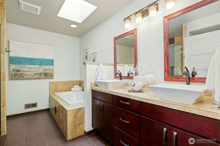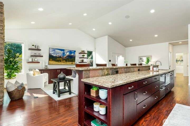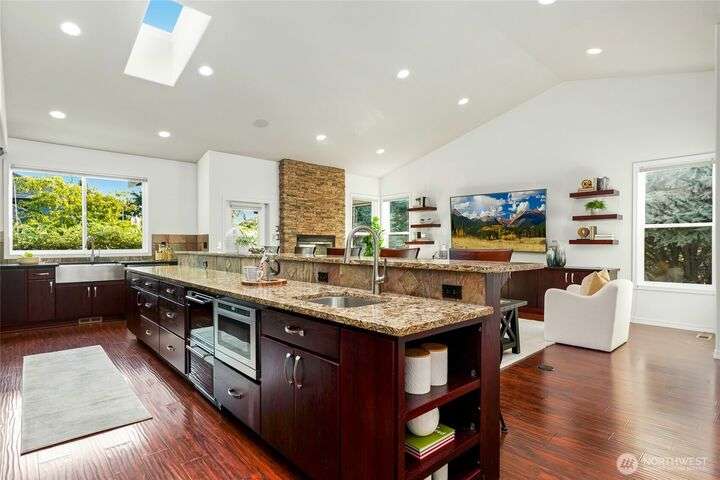 One-owner, custom-built 2015 Finn Hill home inspired by the tranquility of a Japanese Garden. Freshly painted interior, refreshed landscaping, and meticulously maintained. Open-concept main floor w/ vaulted ceilings, skylights, chef’s kitchen w/ quartz counters, oversized island, double oven, beverage fridge, gas-plumbed stove, + walk-in pantry/utility room. Great room with dual-sided fireplace to covered patio with heaters and water features. Main floor primary suite with patio access, heated-floor bath, soaking tub, and walk-in shower. AC, generator, solar panels, EV charger, Lutron system, security, 3-car garage, and more. Perfect for entertaining all year long. Prime location near parks, schools, shopping, Lake Washington, and freeways!