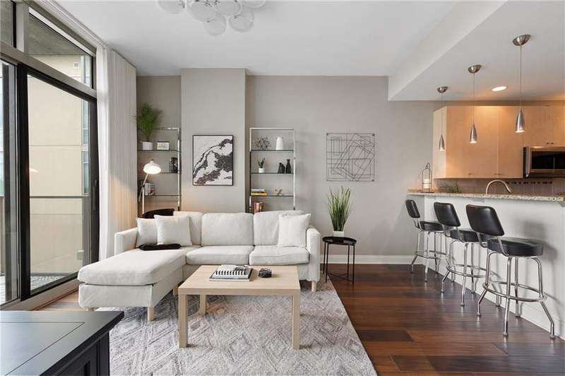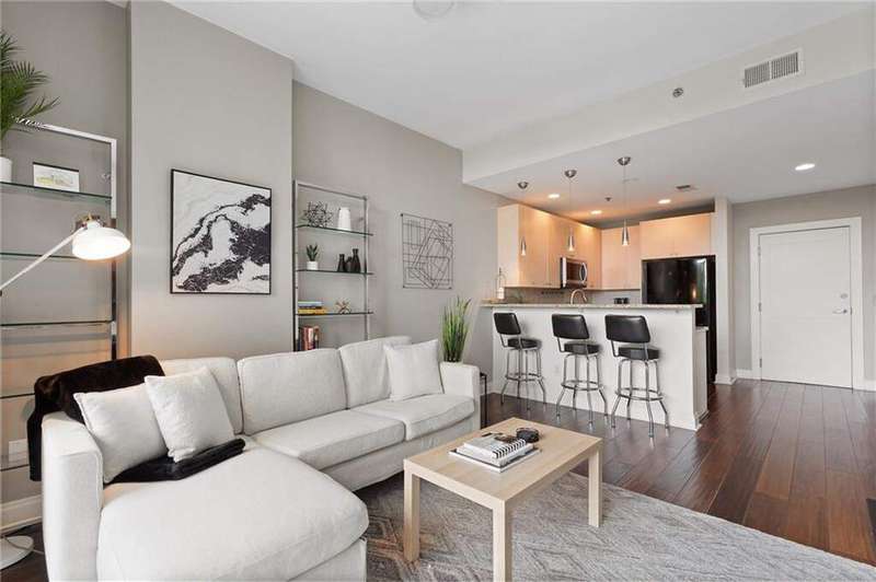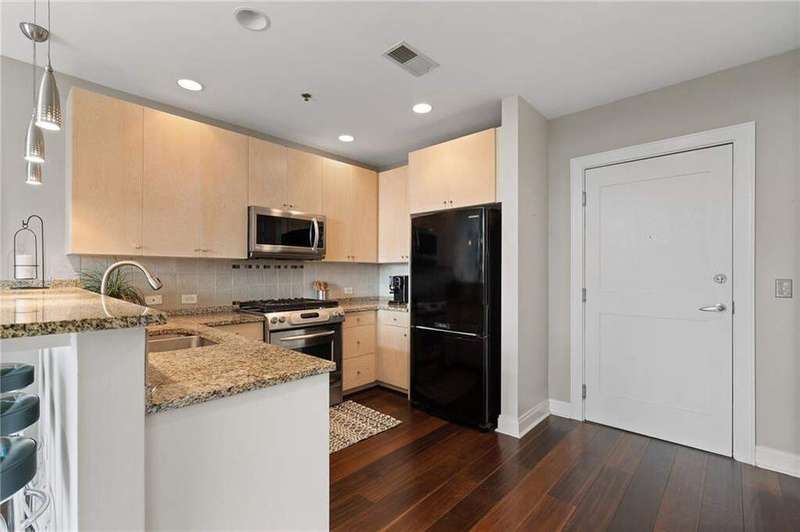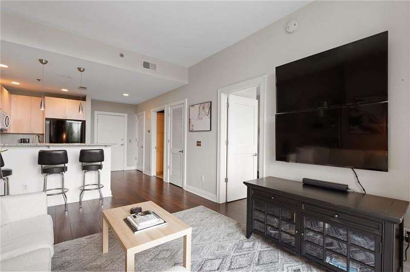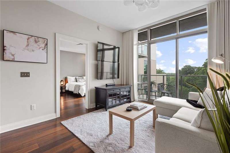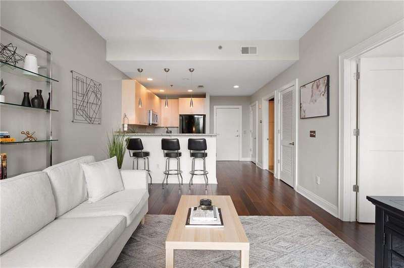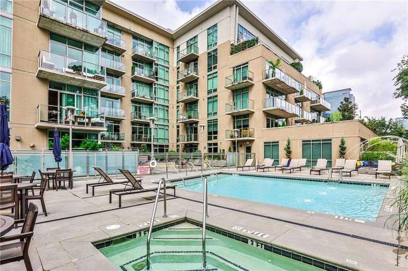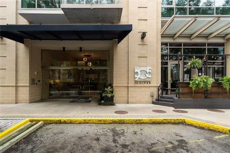 Rarely available 1 bedroom condo in sought-after boutique condominium in prime Midtown location! This light-filled condo offers a modern and inviting open-concept living space with a kitchen and family room that seamlessly flow together. Perfect for both relaxing and entertaining , the home features large windows that let in plenty of natural light. The primary bedroom connects to a large bathroom and boasts a custom walk-in closet with plenty of storage. Enjoy outdoor living with a private balcony that overlooks the community pool and the treetops of Midtown! One gated, deeded parking space in the garage included. Don't miss the community clubroom and work out facility! 905 is a safe, quiet community ideally located just a short stroll from all that Midtown Atlanta has to offer, including Piedmont Park, Beltline, dining, shopping and entertainment! With its desirable location, thoughtful design, and stunning views, this boutique condo is the perfect urban oasis!