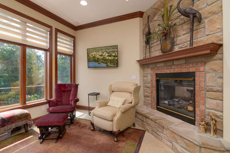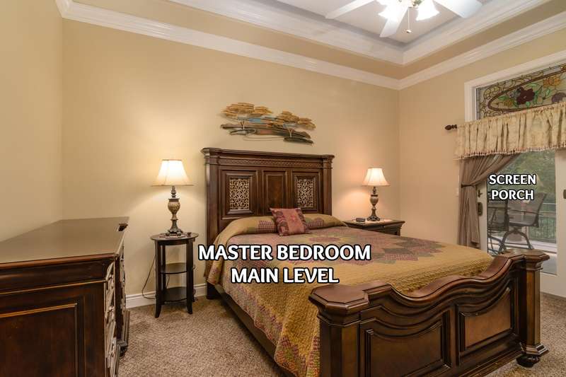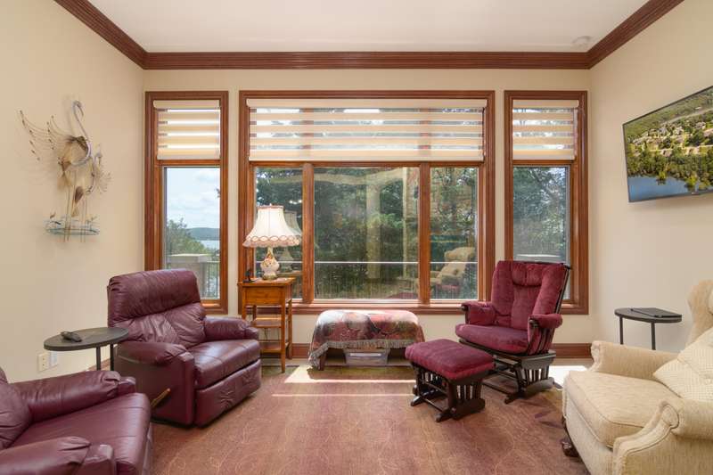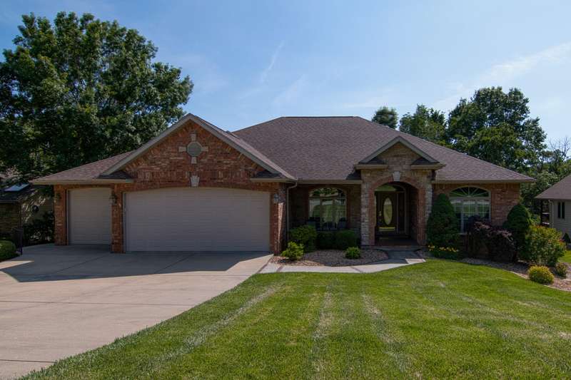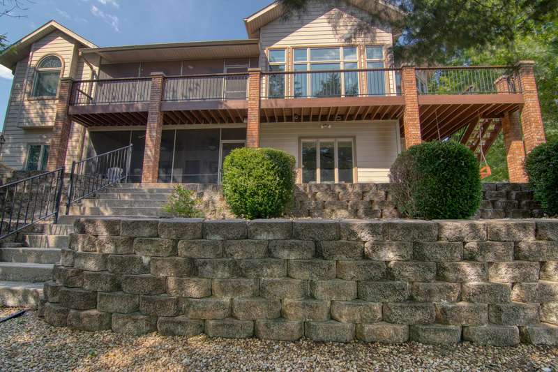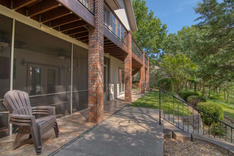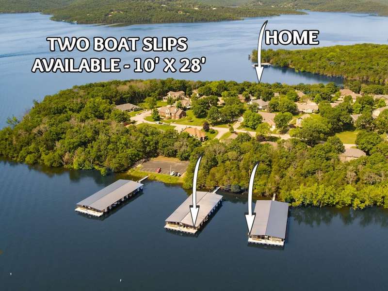Lakefront home with view of the main channel of the lake through the trees plus 2 boat slips available (10'x28', $75k each) right in the neighborhood. Located in the beautiful Hidden Shores neighborhood which is at the tip of a peninsula surrounded by Table Rock Lake. You will appreciate the close distance and gentle slope to the waterfront. This is a beautifully maintained home that is ready for you to move in and start enjoying lake life. As you enter the home you will be impressed by the towering ceilings and appreciate the flowing floor plan. There are screen porches to enjoy on each level of the lakeside of the home that will quickly become a favorite place to relax and unwind. The main level features formal dining area flowing into the great room with see through gas log fireplace also viewed from the hearth room that flows into the breakfast area and kitchen along with laundry, bath and 3-car garage. The master bedroom has access to the main level screen porch plus a smooth flow into the master bath. Also on the main level is an en-suite bedroom for hosting friends and family. The lower level features a family room with extra game area, wet bar, 2 bedrooms, 2 baths, an office/hobby, lots of storage space and bonus room with access to the lower-level garage. There is a launch ramp right in the subdivision to make it easy to enjoy all your water toys. This is truly a lakefront gem so don't wait; it's time to make your lake life dream a reality.