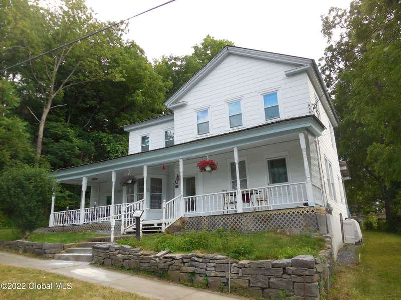 Large home located in the heart of the Village of Sharon Springs. A short distance to village pool, amenities and festivals. Home offers 7 bedrooms, 3 kitchens, and 4 full bathrooms, office and large common area. Summer kitchen on rear porch. Nice back yard with guest house.