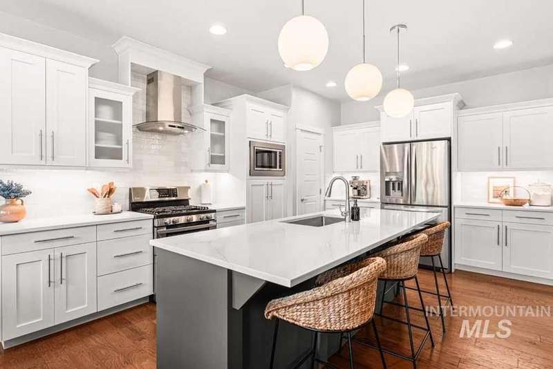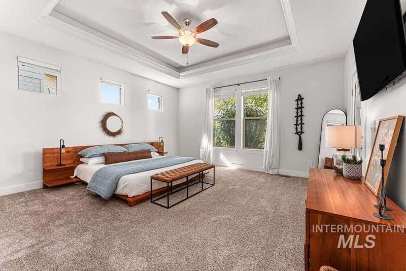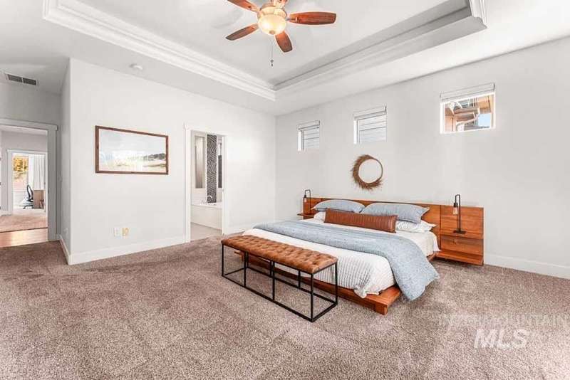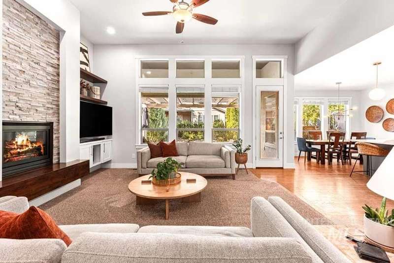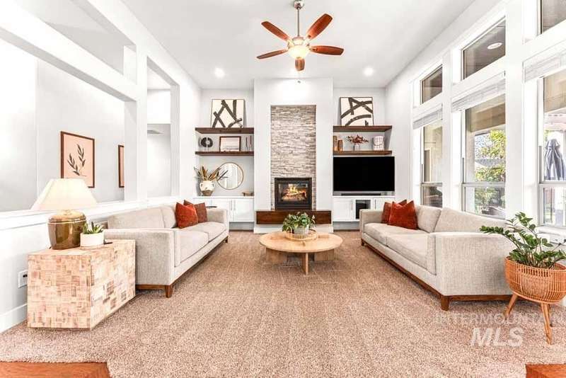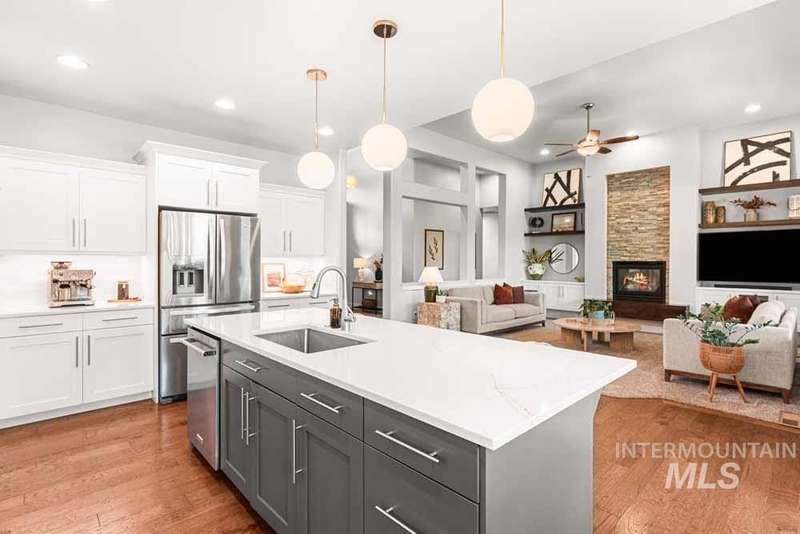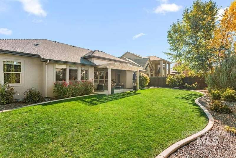Welcome to this beautiful and contemporary single-level home with a charming courtyard entry, located in the highly sought-after Saguaro Canyon neighborhood! Showcasing freshly updated exterior paint, carpet, A/C, water heater, designer lighting, and beautiful hardwood floors, this home blends modern comfort with timeless style. The open-concept layout flows beautifully, showcasing 12’ ceilings, a striking floor-to-ceiling fireplace, and a spacious kitchen with custom quartz, tile, stainless steel appliances, and freshly updated cabinets. The primary suite includes dual vanities, a soaking tub, walk-in shower, and walk-in closet, plus a private junior suite for guests. Enjoy a low-maintenance yard, storage shed, and access to a community pool - all in a family-friendly neighborhood near The Village, golf courses, and parks.