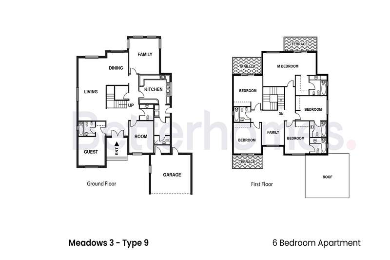 Sheikh & Betterhomes are delighted to present this 6 Bedroom + maid + study (Type 9) villa for sale in the prestigious community of Meadows 3. The villa is very spacious and has been very well maintained by the current owner. The outside of the property is lovely, with a large well-kept landscaped garden, swimming pool & with seating area. Located peacefully within the community, and walking distance to the pool, lake and park, this is a fantastic buying opportunity in a secure and safe family community. - Type 9 - 6 Bedrooms - 6 Bathrooms - Maids room - Study - Laundry - Storage - 4,924 sq ft BUA - 6623.03 sq ft Plot - Landscaped Garden & Patio - 2 Parking spaces - 24/7 Gated Security - Vacant on Transfer Agent: Sheikh Hannan Company name: Betterhomes