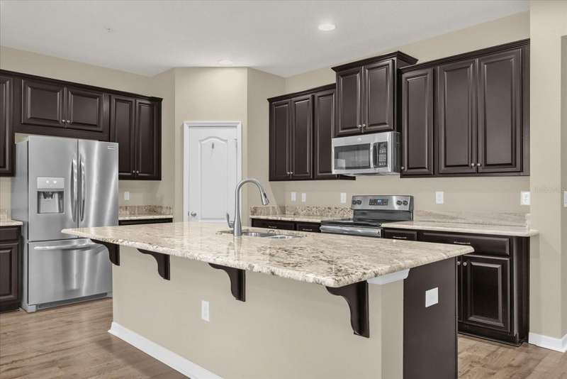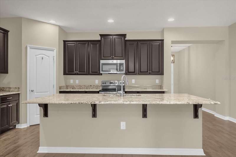 Beautifully upgraded townhouse on a premium pond lot in the desirable Thornbrooke community, offering 3 bedrooms, 2.5 baths, and a one-car garage. This elegant home features laminate engineered flooring on the first floor, oak wood stairs, and luxury vinyl upstairs, accented by a wrought iron stair rail for added style. The chef's kitchen is a highlight with 42-inch cherry cabinets, granite countertops, stainless steel appliances, and a spacious walk-in pantry, while both the master and guest bathrooms showcase dual sinks. Additional conveniences include an inside laundry room with washer and dryer, ceiling fans, and upgraded lighting fixtures throughout. Perfectly located near I-4, 417, shopping, and dining, this home is just 40 minutes from the beach and world-famous theme parks.