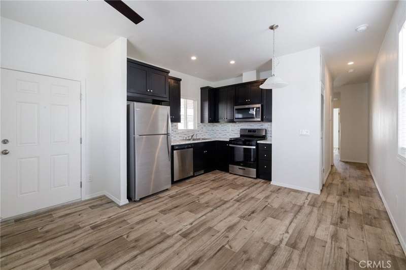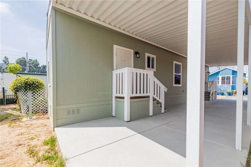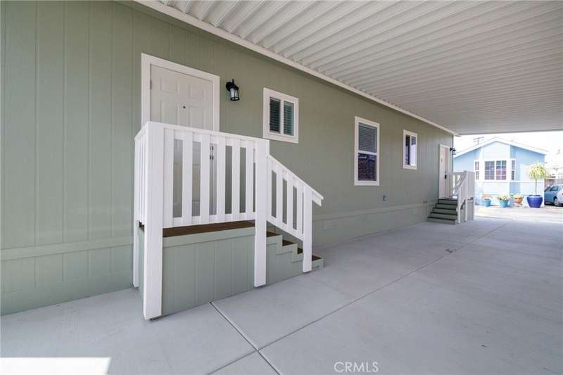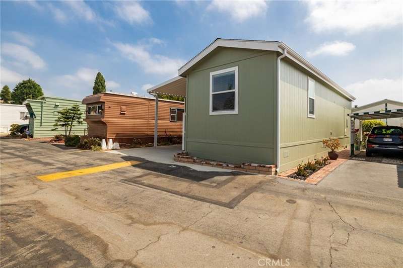 Discover a blend of modern & convenient living in this brand new, thoughtfully designed home, nestled in the charming 55+ community of Cresta Mobile Park. Just 2 miles from the beach, this home offers a unique opportunity to enjoy coastal living at an incredible value. With a low monthly space rent of $1,125 including utilities, this is the best deal in the Beach Cities. Plus, peace of mind comes with the 7 year home warranty. A lovely front brick planter bed leads to a spacious, covered driveway that accommodates 2 cars in tandem parking. Step up to the inviting front porch & enter a well-designed living space characterized by 9 foot ceilings & luxury grey vinyl flooring throughout. The double-pane windows, complete with blinds, provide ample natural light while maintaining comfort. The open-concept great room features a cozy living space with a ceiling fan & window inviting in the ocean breeze. Adjacent to it, the dining area is defined by a pendant light & a sunny window. The stylish kitchen is well-equipped with elegant real wood cabinetry, glass tile backsplash, dual sinks beneath a sunlit window & stainless steel appliances, including a gas range, built-in microwave hood, dishwasher & refrigerator. The hallway, illuminated by recessed lighting, is efficiently designed with a thermostat, forced-air heating unit & dedicated laundry area providing side-by-side washer & dryer space with built-ins. The first bedroom is versatile, ideal for a guest room or home office, featuring a window & closet. The full bathroom is beautifully appointed with abundant cabinetry & built-ins, a white shower/tub enclosure with glass doors & a window for additional ventilation & natural light. Your primary bedroom serves as a private retreat, offering a spacious closet, a ceiling fan, a large window & secondary door leading to the covered driveway. This flexible outdoor patio could be enjoyed for entertaining or relaxing. Your lifestyle is further enhanced by a community recreation room with complimentary WiFi. With a Walk Score of 74, this "Very Walkable" neighborhood offers impressive convenience to a variety of amenities including restaurants, shopping, pharmacies, grocery stores, Starbucks, parks, a dog park, King Harbor Marina & the iconic beaches of Redondo & Hermosa. A quick 5 minute ride takes you to the beach & the freeway is just 10 minutes away. Do not miss your chance to own this refined mobile home in a tranquil 55+ community within the prestigious Beach Cities.