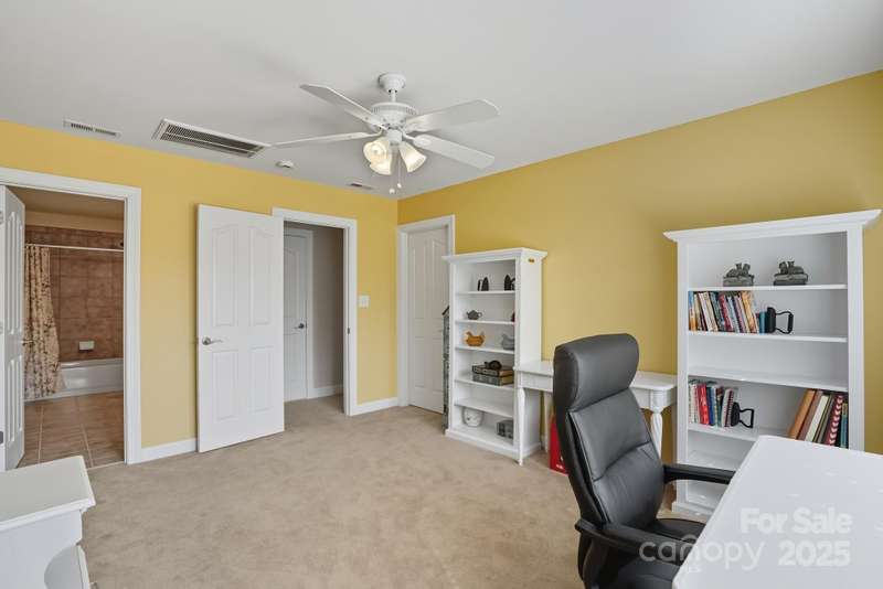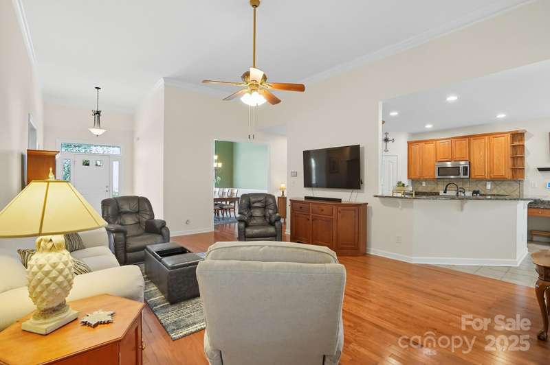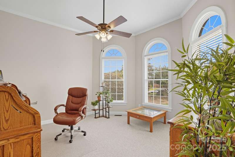 ALL THE COMFORT OF ONE LEVEL LIVING WITH THE LUXURY OF OPEN SPACIOUSNESS! This stunning, all-brick home on Waterford's 14th hole is ready for you to move in. Loaded with brand NEW main level wood flooring, NEW roof (2023), and NEW Trane HVAC (2024). One story living at its best with a private guest room and full bath upstairs. The large, well designed kitchen features plenty of cabinets, classic granite counter tops, with a large brekafast bar for seating, and a bright area for a casual kitchen table. The kitchen easily flows into the formal dining room with plenty of room for large gatherings. Enjoy the newly painted, inviting living room with a gas log fireplace, or hang out in the flex/bonus room, which offers plenty of space and floor support for a pool table. The luxurious main level Primary Suite is a true retreat with the bath featuring double vanities, tub for soaking, a separate toilet closet, and two walk-in closets. The split-bedroom floor plan includes 2 additional bedrooms on the first floor with a full bath , placed opposite side of home from the primary suite. A light-filled study/office is on the main level. Upstairs is a 4th bedroom with its own private bath. Main level laundry room with sink and cabinets. Outdoor living is exceptional with a cozy, private screened in porch, spacious deck, and patio all overlooking the golf course. Relax and take it the peaceful beauty of nature as you watch songbirds in the wooded area behind the home, or enjoy the view of golf carts along the fairway and the pond in the distance. Golf course living at it's best with no membership requirement! A spacious, over-sized 2-car garage with room for a golf cart is an added bonus! Walk-in attic storage. Irrigation system. Highly desirable neighborhood with pool, sidewalks, streetlamps, and low HOA. You can't beat this location! Minutes to I77, quick commute to Charlotte, and minutes from Rock Hill's premier shopping, dining, and Old Town. Don't miss this one!