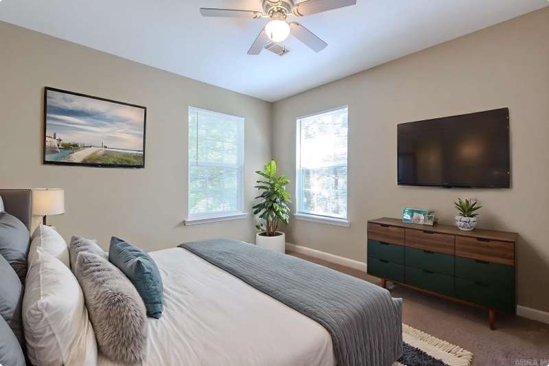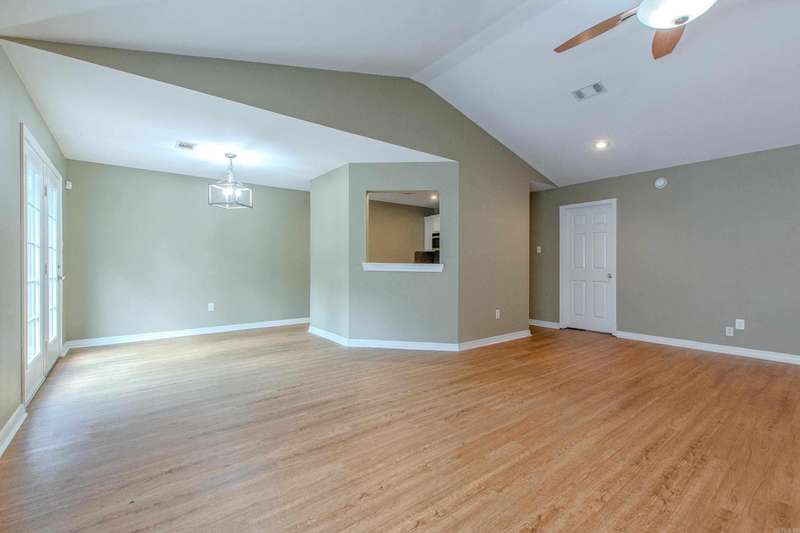 What a deal—under $200K and qualifies for ZERO downpayment loan. Call for detials on this beautiful one-level home offers 3 bedrooms, 2 baths, and an inviting, oversized den perfect for relaxing or entertaining. The semi-open kitchen flows nicely into the dining area and den, creating a comfortable and functional layout. Wood-like flooring adds warmth and charm, while carpeted bedrooms provide a cozy retreat. Large windows fill the home with natural light, and the back deck feels like a peaceful treehouse getaway—ideal for morning coffee or evening gatherings. The spacious primary suite features a luxurious jetted tub, double vanity, and separate shower. With a laundry room, two-car garage, and a fantastic price, this home is truly a must-see!