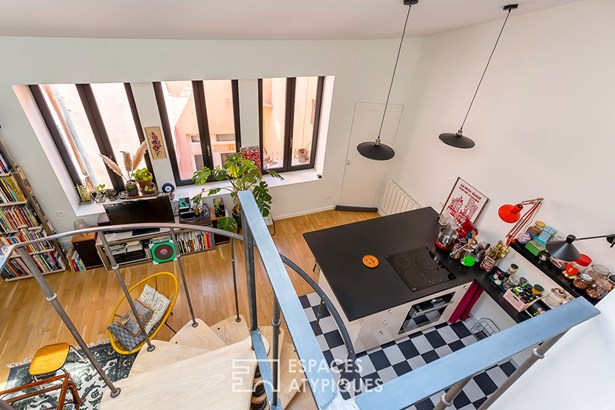 Located on the banks of the Saone, on the edge of Lyon's 5th arrondissement and close to the Homme de la Roche, this contemporary loft on the 3rd and top floor of 63sqm (62sqm Carrez law) is quietly located in an old building.