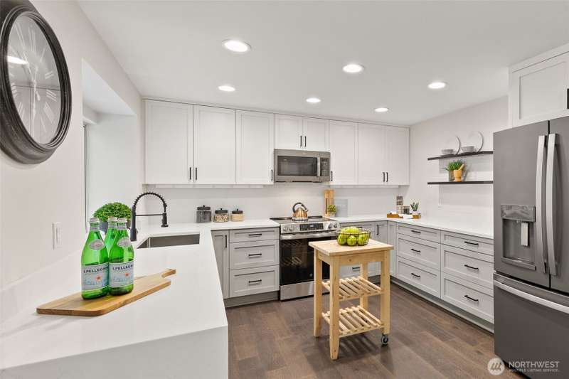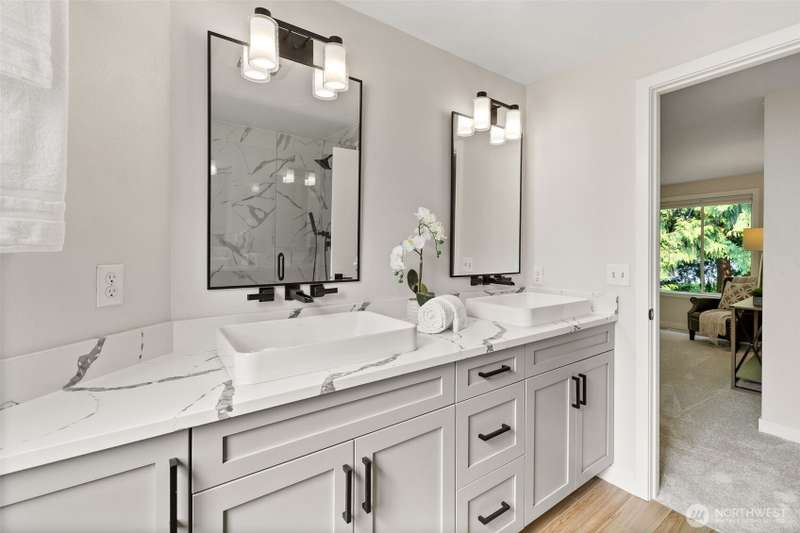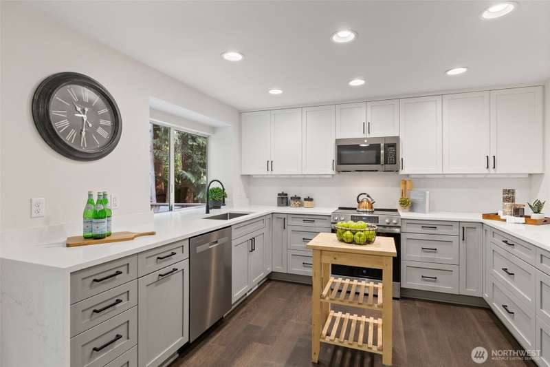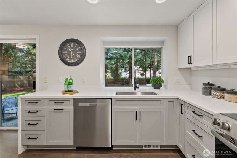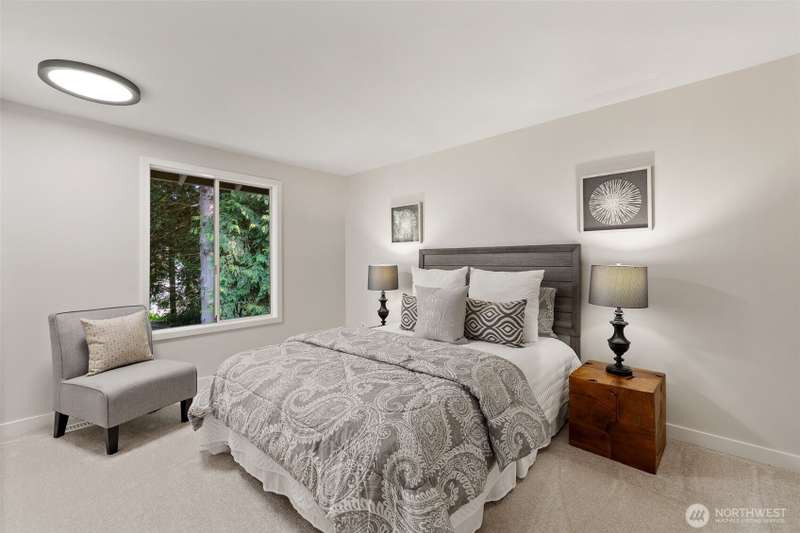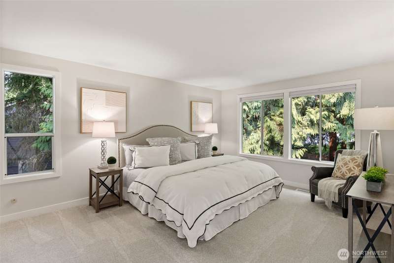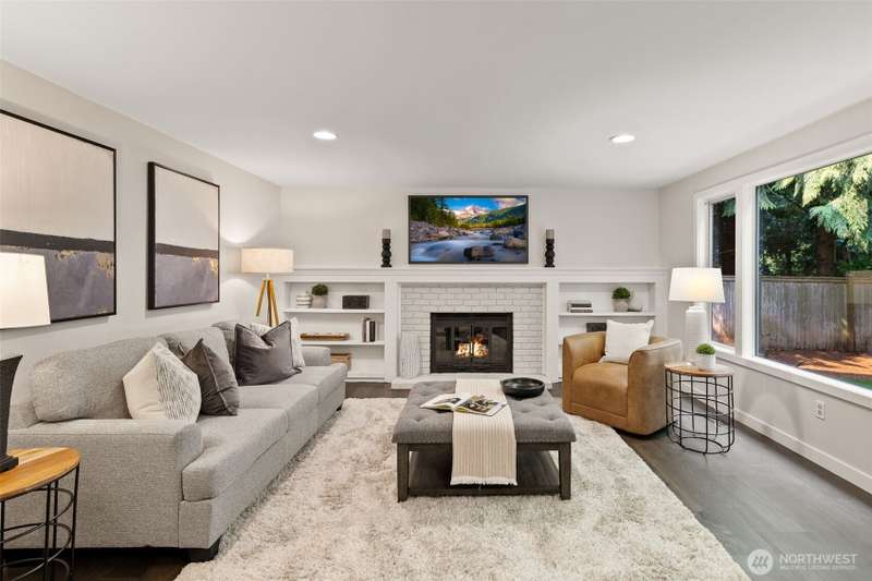 This home has the perfect combination of traditional elegance and contemporary design. Located on a quiet cul-de-sac in the heart of Timberline. Beautifully remodeled inside and out this 4-bedroom home is move in ready. Large, open kitchen with fresh white and gray cabinetry, new stainless appliances and quartz counters. The adjoining family room has a wood burning fireplace, built-in bookshelves and overlooks the expansive fully fenced backyard. New carpeting, engineered hardwood flooring throughout the main level, air conditioning, new light fixtures and new landscaping in the front and backyard that includes low maintenance turf. Just a few minutes to downtown Sammamish shopping, restaurants and parks. Easy 520 commute!