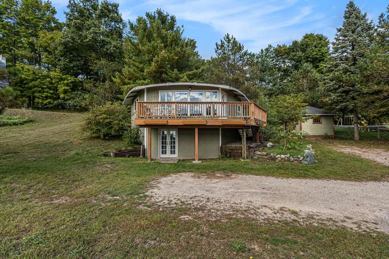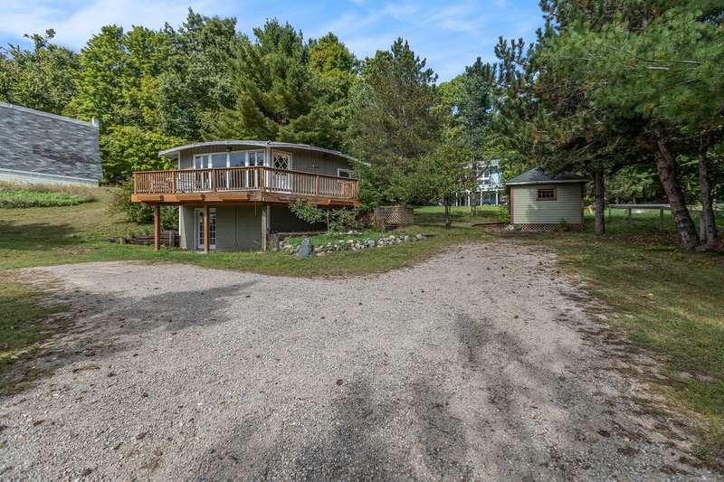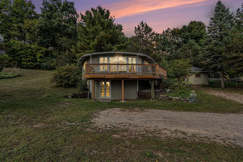 Unique Hexagon Home with Resort Amenities! This unique 2-bed, 2-bath hexagon-shaped home offers an open floorplan with vaulted ceilings and abundant natural light. A large south facing deck at the front of the home provides the perfect spot to enjoy the beautiful views of Northern Michigan. The finished lower level of the home features a large open space, complete with a murphy bed, 2nd bath, laundry hookups and a walkout to the front lawn. Previously used as a large primary suite, this flexible space offers tons of possibilities. Located 15 minutes from Boyne City, Petoskey and Boyne Mountain, this home is ideally located to enjoy year-round outdoor activities. Excellent short-term rental potential with access to Springbrook HOA amenities, including a pool, clubhouse, beach and pond.