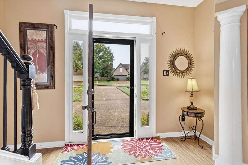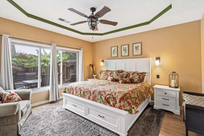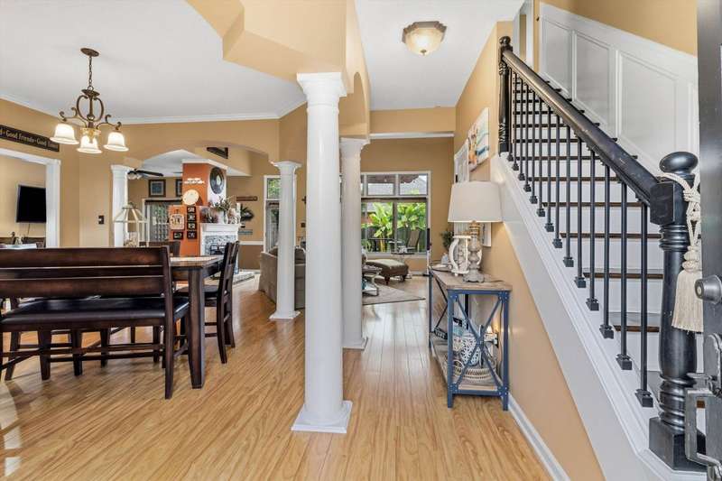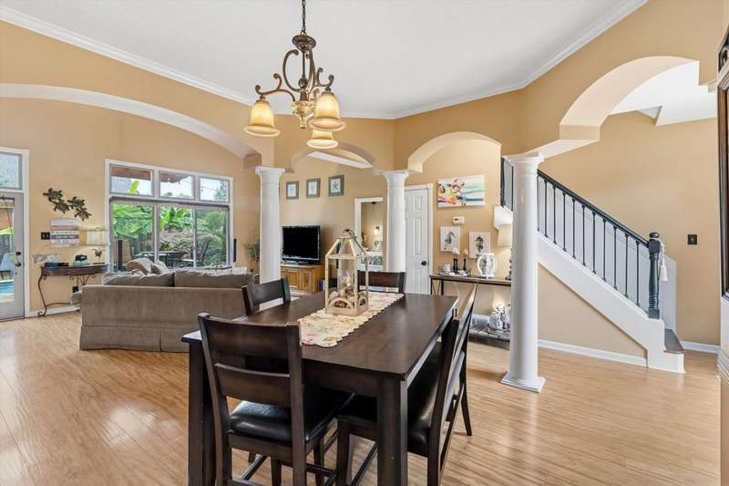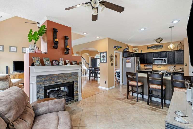 OPEN- SATURDAY- NOVEMBER 1ST -12:00-2:00 - Your patience has paid off - this is the one! Stunning 4-bedroom home with 2.5 beautifully renovated baths and an oversized upstairs bonus room. Gorgeous wide-plank hardwoods flow through the open, vaulted great room and dining area, leading to an updated kitchen with double ovens and modern finishes. Enjoy the cozy hearth room with a double-sided fireplace or take in backyard views through Anderson sliders and transom windows that fill the home with natural light. Step outside to your private oasis featuring a custom Gunite pool, spacious pool deck, and lush landscaping, all maintained by a full-yard irrigation system. Situated on a spectacular corner cove lot, this home offers exceptional style and comfort with updated lighting, HVAC systems, and water heaters. Move-in ready and perfect for celebrating the upcoming holidays - don't miss this dream home!