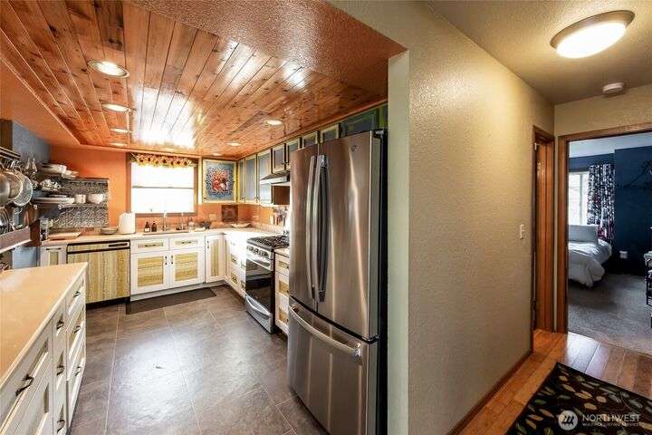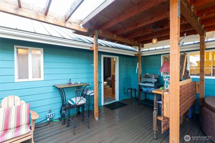 Move-in-ready home in town. Furnished 3-bedroom...2.5-bath home offers vaulted ceilings...and much more. The main level includes 2 bedrooms...a full bath...a half bath and laundry room leading to attached garage. The kitchen is ideal for entertaining. The upstairs primary suite offers built-in cabinetry along both walls...spacious walk-in closet and a private full bath. Step outside to a wood deck covered patio...perfect for relaxing ...plus a covered hot tub...a small storage shed off the deck for the lawn mower and garden tools (included)...a large low maintenance fenced backyard...with RV parking on the side of the house.