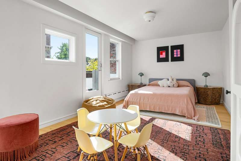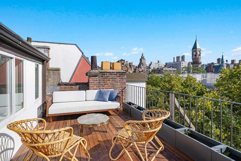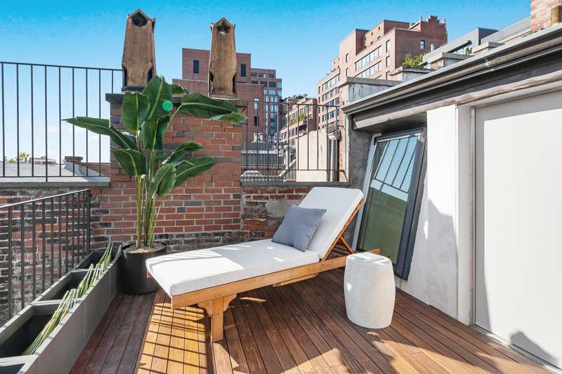 The top floor of the home is a stunning living space with beautiful casement windows and beamed ceilings reaching over 13ft. There is a wine fridge and wet bar, a full bathroom, a south-facing terrace over iconic Village views across Jefferson Market Library to the Freedom Tower. Elevator access making indoor/outdoor entertaining a breeze.