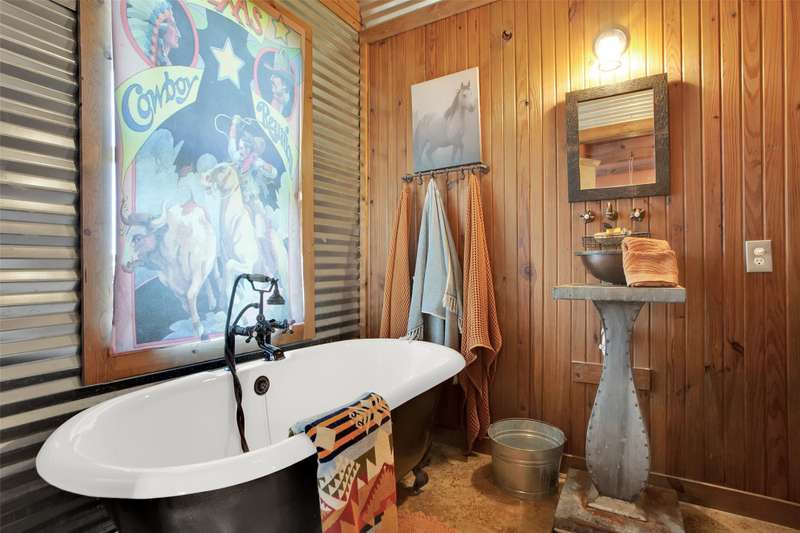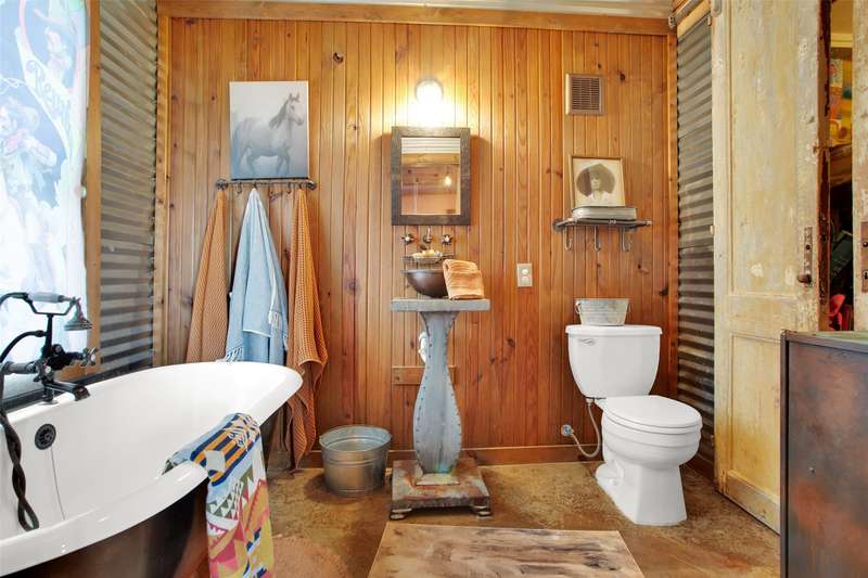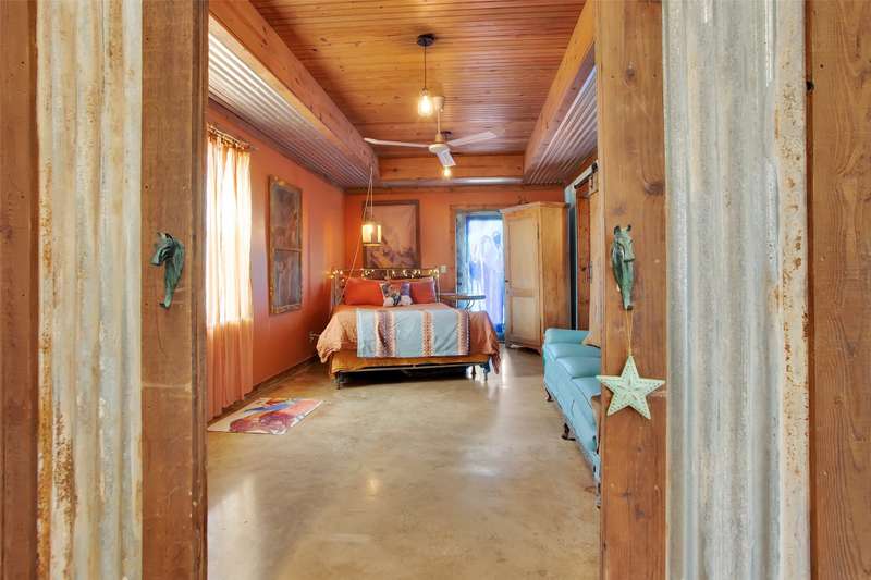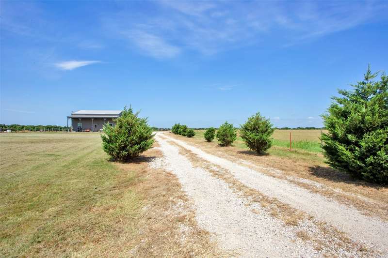 This one-of-a-kind barndominium blends rugged Texas charm with vibrant artistic flair, set on 3 fully fenced acres. The spacious open-concept layout features vaulted metal ceilings with exposed beams, polished concrete floors, and rich wood accents throughout. A cozy wood-burning stove anchors the living area, while Western-inspired dcor, sliding barn doors, and colorful original art add character and warmth.The cozy bedroom retreat includes a walk-in closet and an en-suite bath featuring a statement clawfoot tub and corrugated metal and wood finishes that tie into the homes rustic aesthetic. A spacious laundry room is located just off the kitchen and opens to the attached garage for added convenience.The 3 acres are fully fenced, with a lean-to shelter and ready for your horses. Enjoy peaceful mornings and relaxing evenings from both front and back covered porches. With an attached 20 x 12 garage for additional storage or workspace, and just half a mile from the shores of Lake Ray Roberts, this property is ideal for full-time living, a weekend escape, or a unique short-term rental opportunity.