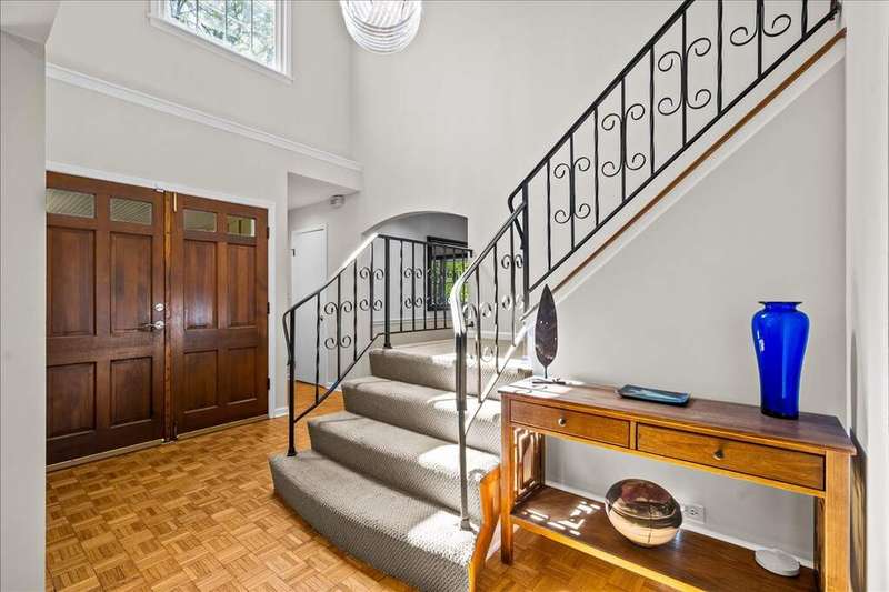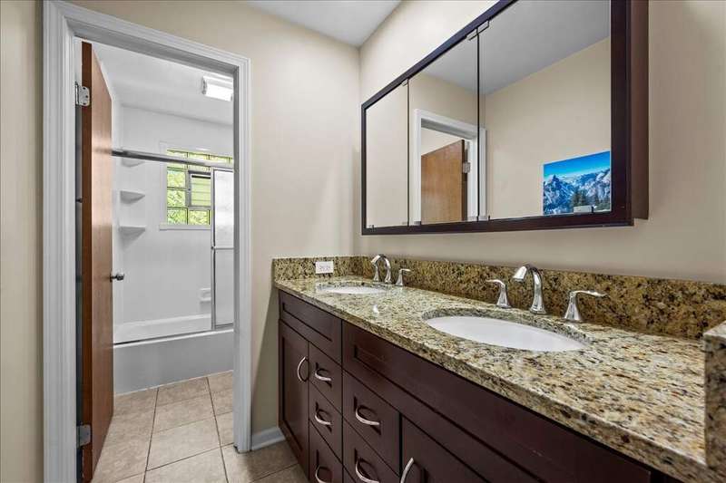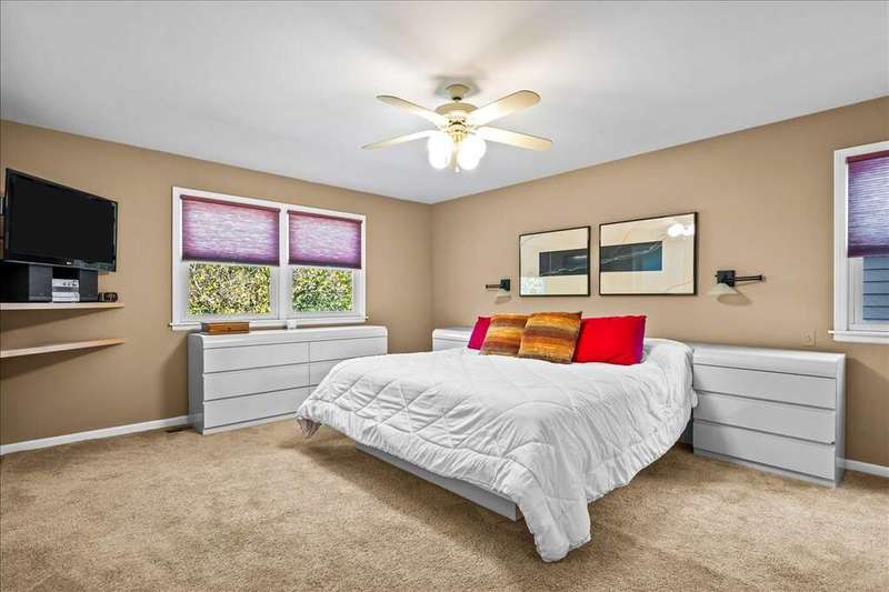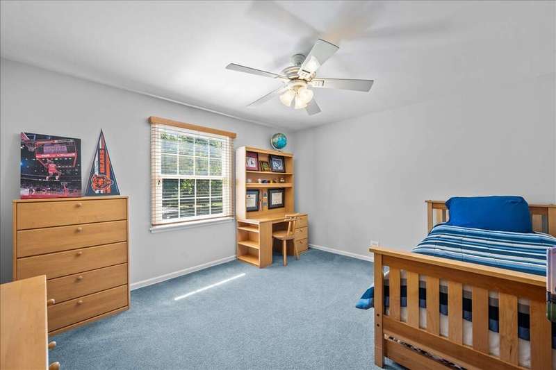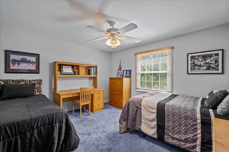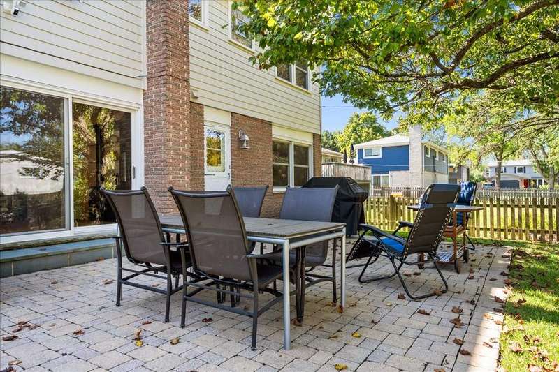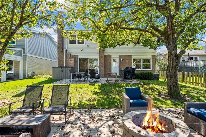 Welcome to this spacious 2-story home offering nearly 3,000 square feet of comfortable living in the highly sought-after Sherwood Forest neighborhood. The main floor features a bright and inviting living room with recessed lighting, a formal dining room perfect for entertaining, and a generous eat-in kitchen complete with a large pantry closet. Relax in the cozy family room with a gas fireplace and sliders to the patio. Enjoy the convenience of a main-floor laundry, powder room, and huge walk-in hall/guest closet. Upstairs, you'll find four generously sized bedrooms, each with walk-in closets and ceiling fans. The primary suite includes an additional closet and an updated en-suite bath. The hall bathroom offers double sinks and a private toilet and shower area - ideal for busy mornings. The finished partial basement adds versatile living space, while the adjoining crawl space provides ample room for storage. Step outside to your own backyard retreat featuring a charming brick patio with a gas hookup for your grill, plus a separate brick firepit with a gas starter and log rack included. Two-car garage with large alcove for storage. Maintenance free brick and Hardie board siding. Some key details: Alarm system included; updated electric panel; roof replaced 2011; Pella windows installed 2014.