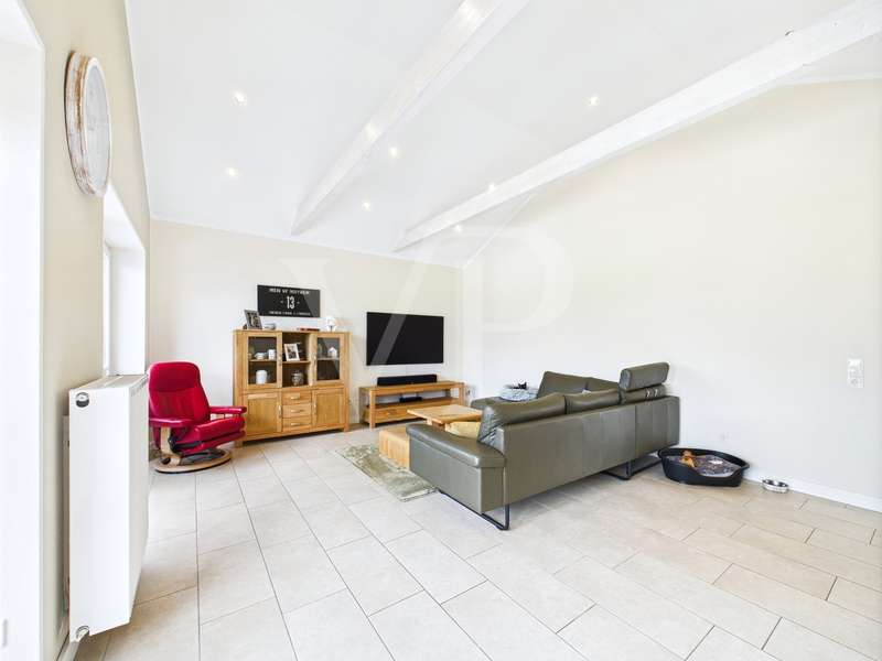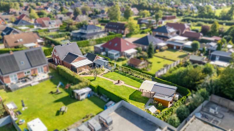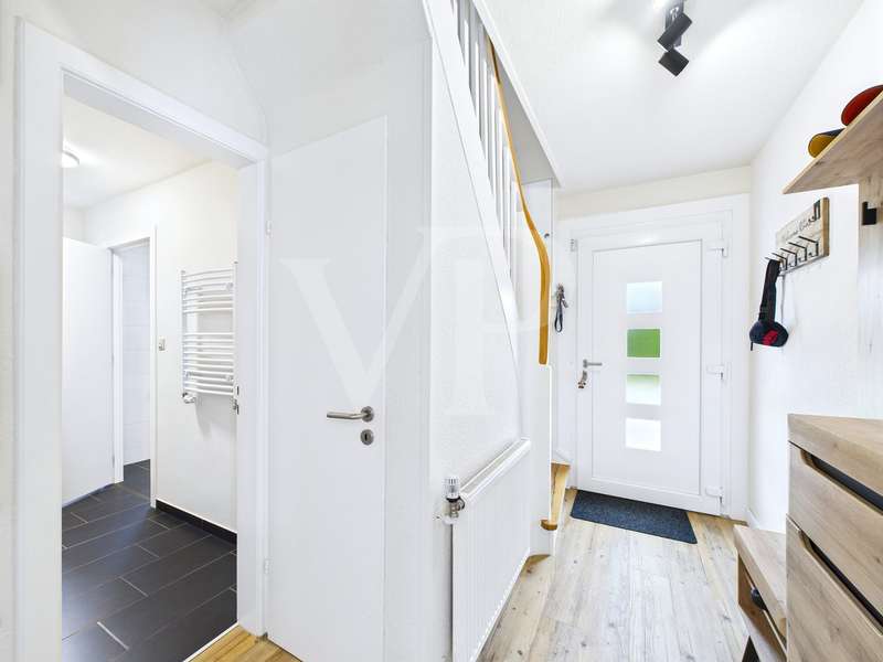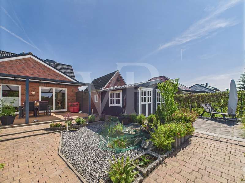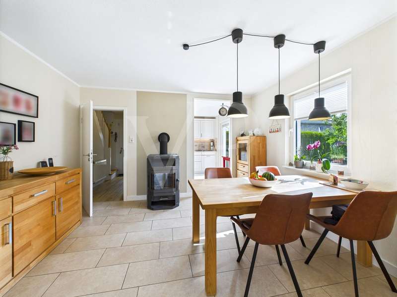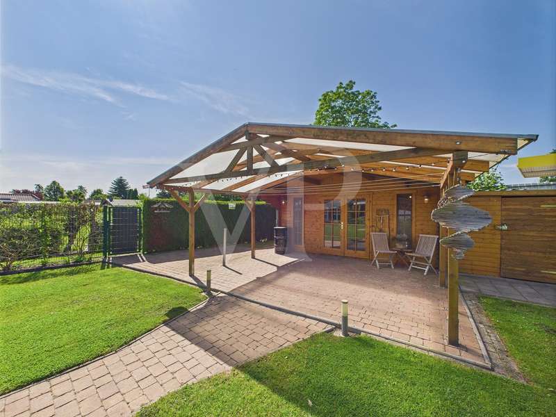 This modernized detached house was built in 1963 and offers approx. 104 m² of living space. On a generous plot of approx. 1,182 m², this property offers plenty of space and comfort for you and your family. The house is in mint condition and is ready to move into. The property has a total of five rooms, including three bright bedrooms. The spacious living and dining area impresses with its well thought-out room layout and offers plenty of space for cozy hours with the family. A fireplace blends harmoniously into this ambience and provides cozy warmth in the cooler months. The as-new fitted kitchen, which was completely renovated in the course of modernization, impresses with its high-quality appliances and plenty of storage space. The adjoining dining area connects the kitchen with the bright, spacious living area. A high-quality bathroom and an additional, modern shower room ensure sufficient privacy and comfort. The house has a partial basement and therefore offers additional storage space, ideal for household items or as a storage area. The landscaped garden is a real highlight of this property. In addition to an apple tree and a small pond, three terraces invite you to relax and linger, with both covered and open seating areas available. Two log cabins are available for garden tools and equipment, and there is also a larger log cabin with seating. The outdoor area has been carefully designed to provide sufficient space for leisure activities. The property also offers the desired privacy, ideal for relaxing hours outdoors. A double carport is available for your vehicles, supplemented by two additional parking spaces. There is also a wallbox for electric vehicles, which meets the requirements of modern mobility. The offer is rounded off by a practical workshop that can be used in a variety of ways. The entire property is characterized by a well thought-out and functional design, with great attention to detail and high-quality materials. This as-new detached house offers you the opportunity to move into a lovingly designed home that offers numerous possibilities for individual design, both inside and out. Arrange a viewing today and see this attractive offer for yourself.
