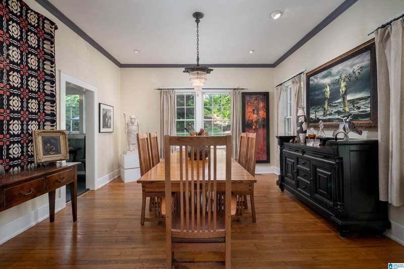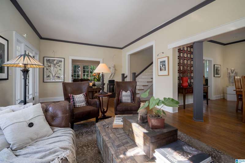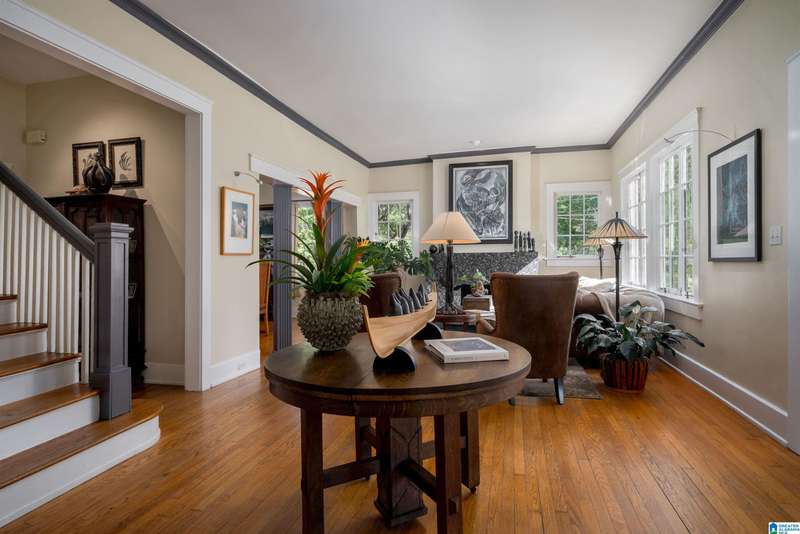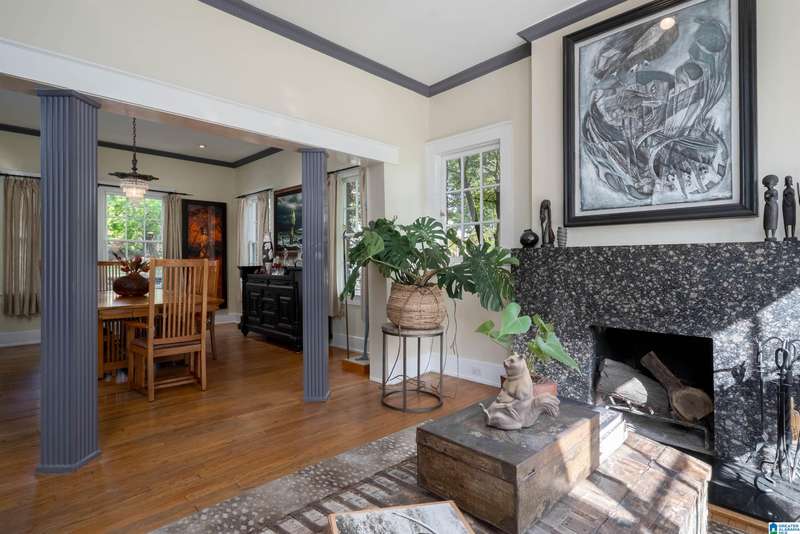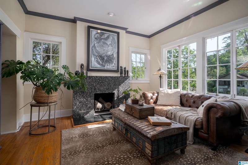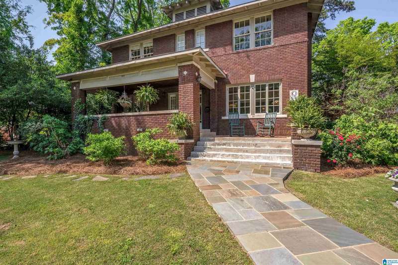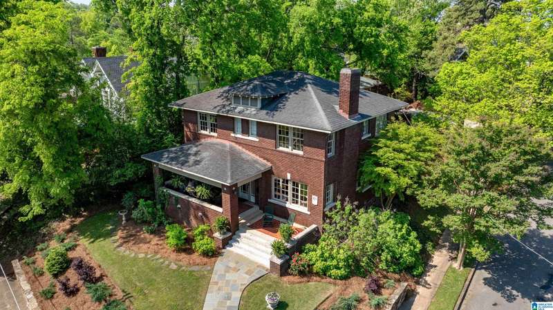 This historic Forest Park home offers features not often found at this price! Sitting just above street level, on a beautiful landscaped corner lot, this full brick home offers two living spaces and guest quarters! The large formal living room, with fireplace, opens to a cozy family room and a formal dining room. The renovated kitchen (2024) provides numerous cabinets topped with granite counters, slate floors and gas cooking. Powder room and laundry room complete the main level. 4 true bedrooms and 2 bathrooms and deep closets are found on the upper level. Guest house with full bathroom is the perfect flex space, currently used as an art studio. Enjoy easy access to rear patio or the deep covered front porch. Stone retaining walls and bluestone walkways, blend so well with landscape. Multi car parking, tall ceilings original hardwood floors and so much more. 50 year roof installed 2015, both Trane HVAC 2015, water line replaced 2020. Mins to UAB, downtown and Avondale restuarants.