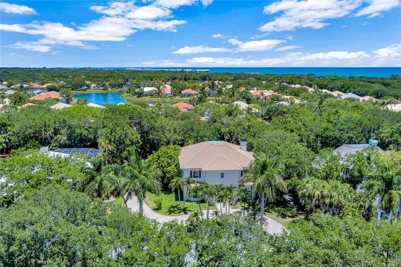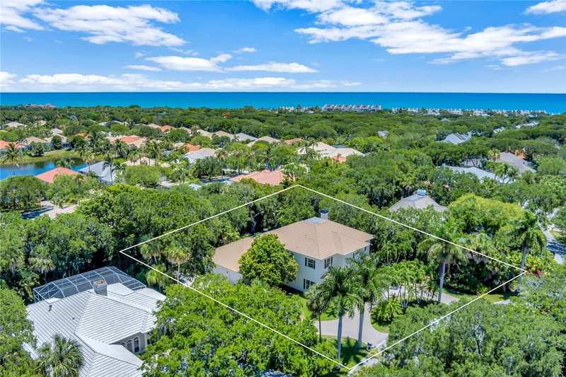 Beautiful spacious contemporary home located on Vero Beachs coveted barrier island in the desirable Ocean to River Marbrisa neighborhood, renovated in 2022. Enjoy soaring ceilings, formal dining, a beautifully remodeled island kitchen w/Quartz counters. 1st floor primary suite includes a walk-in closet & spa-like bath. Outdoors, entertain with ease on the covered lanai & relax by the saltwater pool surrounded by lush tropical landscaping. Gated community amenities include beach access, two clubhouses, marina, tennis, pickleball, 2 pools, fitness center & sauna. Sizes approx./subject to error.