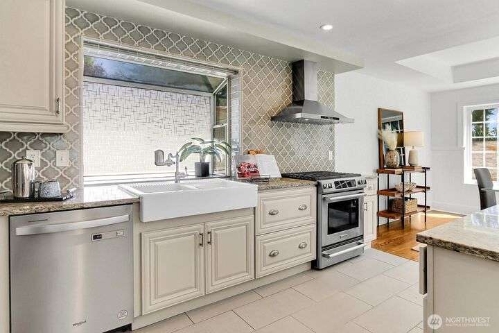 Discover a luxurious, fully renovated Craftsman in a two-home Crown Hill residence. This upper unit charms with vaulted wood-beam ceilings, hardwood floors, and abundant natural light. With 5 BRs and 3.5 Baths, this home checks every box when it comes to space. The Chef’s kitchen includes wine fridge, pantry, farm sink and an open floor plan. The living and dining areas centered around a sunny deck —perfect for entertaining. A plush primary suite like no other with high ceilings and spa bathroom with jetted tub. Home has 2 gas fireplaces, a practical mudroom and central A/C. Detached 2-car garage + 3 off-street spots. Gated pool shared with the lower unit (low-dues HOA). Close to QFC, parks, Trader Joe’s, Metro Mrkt and top-rated schools.