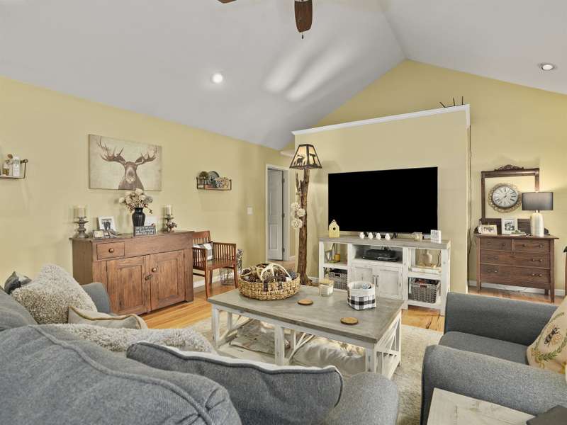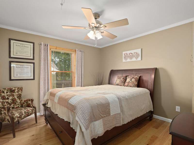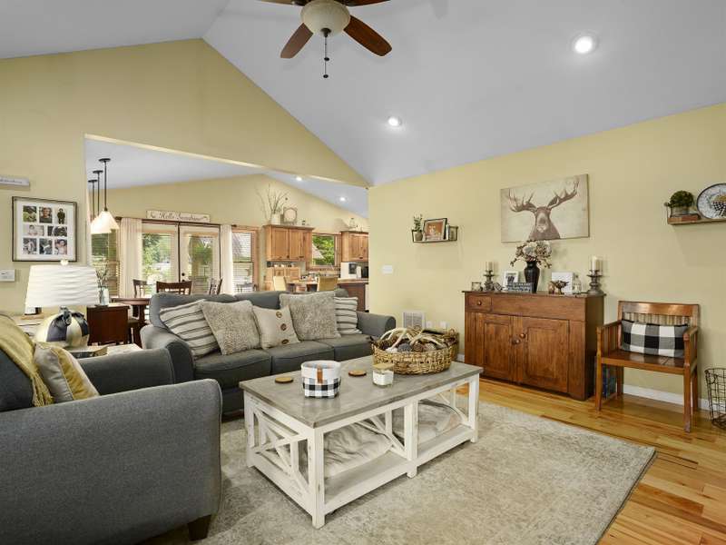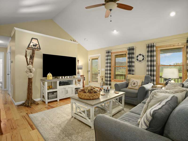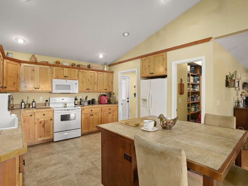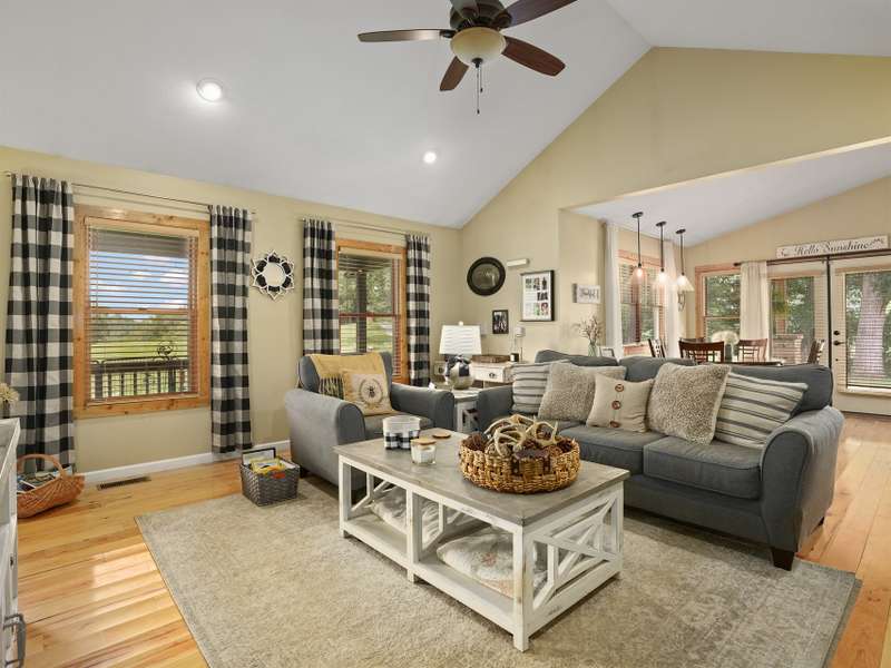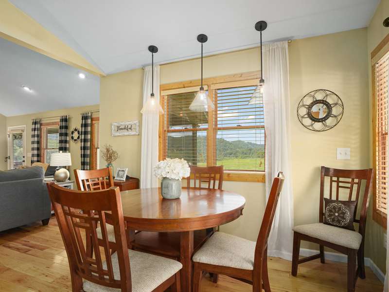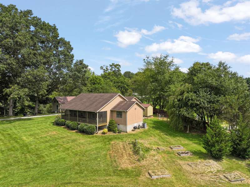 Nestled in a serene, private haven with breathtaking views that whisper tranquility, this charming Arts and Crafts-style home, built in 2009, offers over 1,600 square feet of single-level bliss. Cozy and inviting, its vaulted open floor plan flows seamlessly, bathed in natural light, creating a warm embrace for everyday living or entertaining. Step into the spacious kitchen, a culinary dream featuring a generous island, custom knotty Alderwood cabinets that add rustic elegance, and ample space for gatherings. The three bedrooms include a luxurious primary suite: unwind in the soaker jet tub, refresh in the walk-in shower, or primp at the double vanity, all complemented by a roomy walk-in closet and house eco water filtration system. Outside, Hardi plank siding ensures enduring beauty and low maintenance. Savor mornings on the expansive 8' x 30' screened-in porch, overlooking lush grounds. A large patio invites al fresco dining, while the detached garage and substantial outbuilding provide storage/hobby galore. Public utilities keep life simple in this idyllic retreat. Your cozy sanctuary awaits. ***Seller plans to keep the adjoining 14 acres and plan to add restrictions such as no manufactured homes and limited amount of homes.