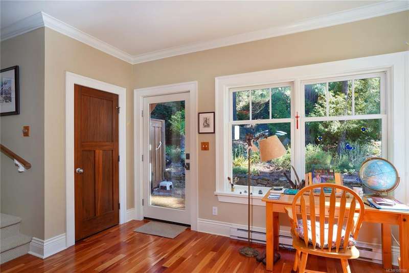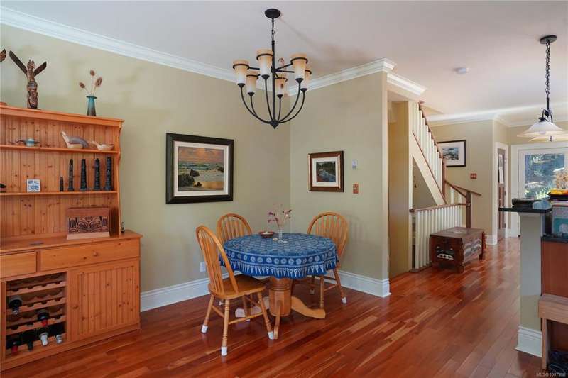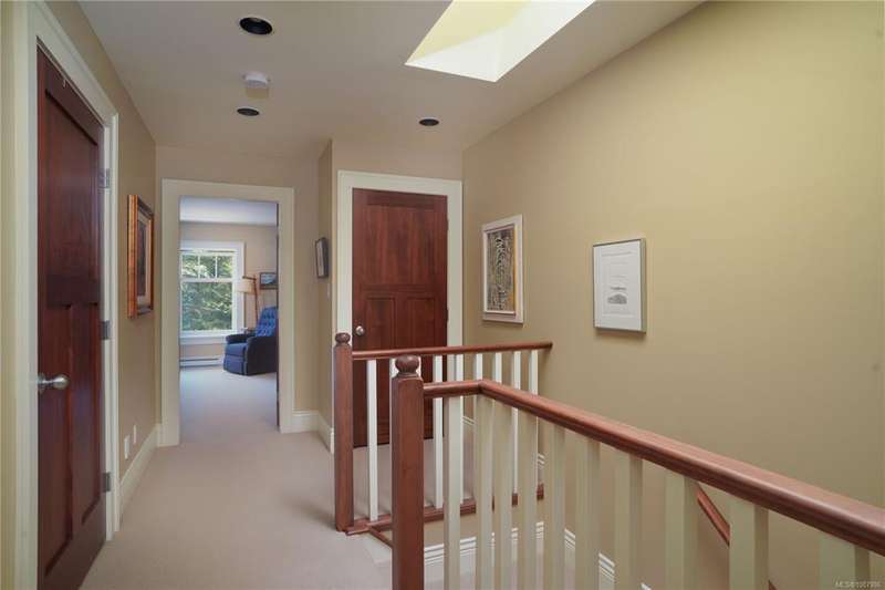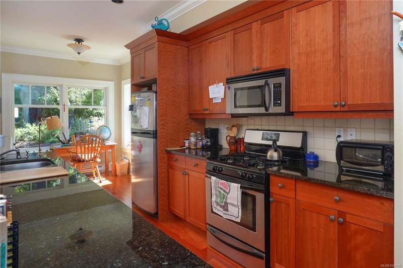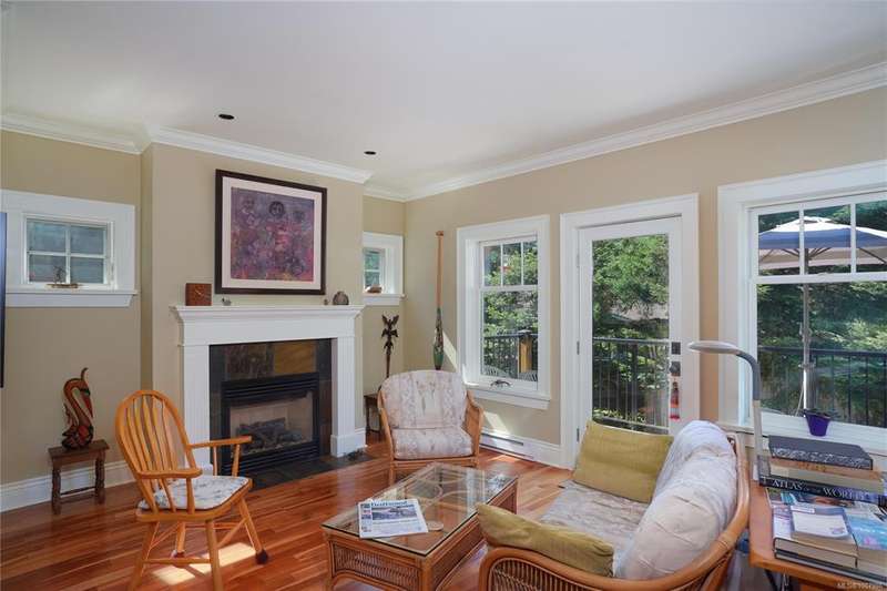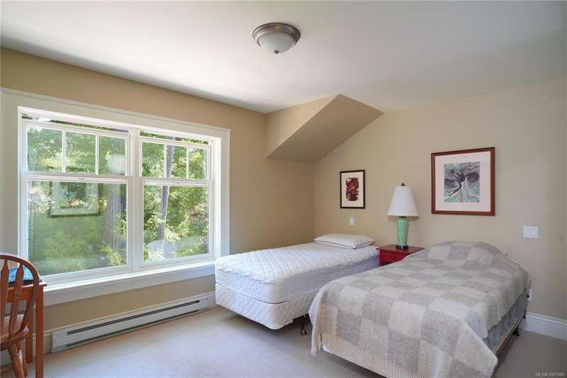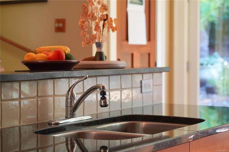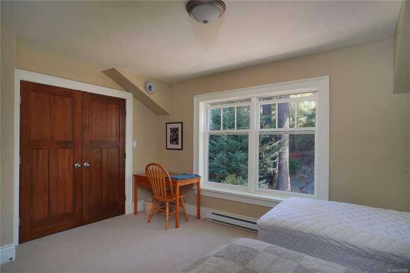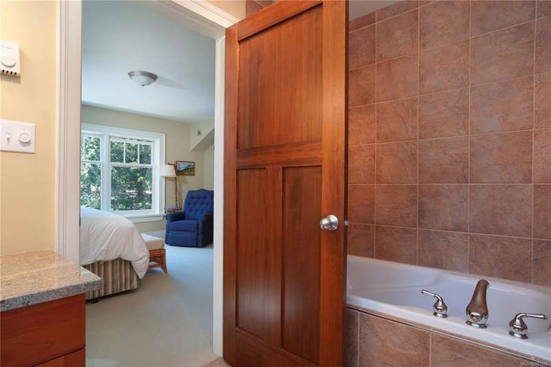 Welcome to easy living in Summerside Village! This spacious and elegant 2-bedroom, 4-bathroom corner-unit townhouse is just steps away from Ganges Village Market. Thoughtfully designed in a classic craftsman style, it stands out with its private garage, sunny south-facing balcony, and a quiet stone patio surrounded by a woodland garden. The main level is ideal for entertaining, featuring hardwood floors, high ceilings, a cozy fireplace, oversized windows, and a well-appointed island kitchen. Upstairs, both bedrooms offer their own ensuite bathrooms, while the ground floor provides a flexible space with a large sink and a full bathroom—perfect for a home office, or art studio, or convert to a third bedrm. Enjoy the ease of strata living with the feel of a detached home. Summerside amenities include a charming clubhouse with an indoor pool, gym, kitchen, and low-cost guest suites for your visitors. A peaceful, convenient lifestyle just a short stroll from Ganges and all its amenities.