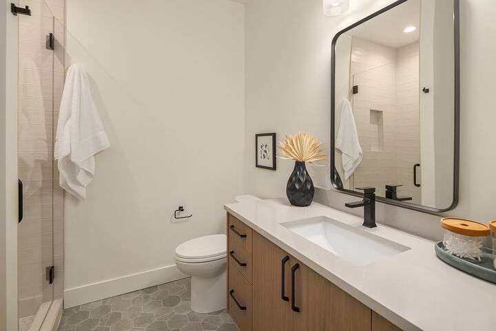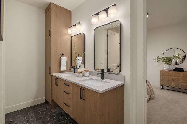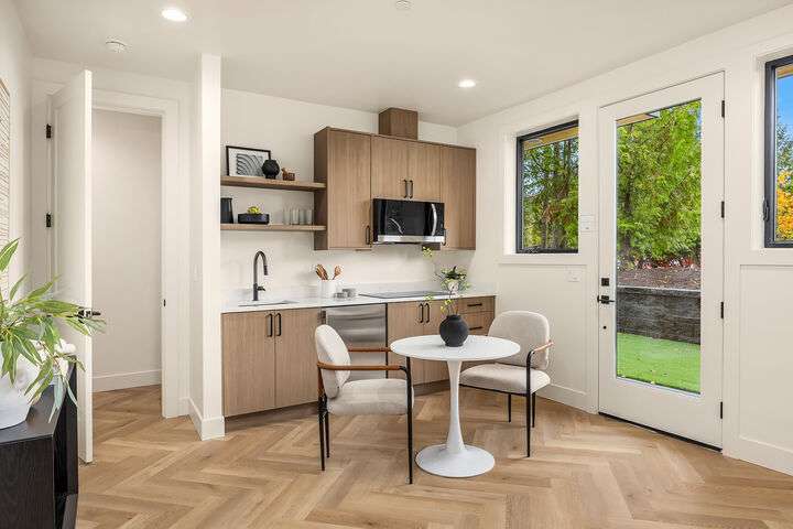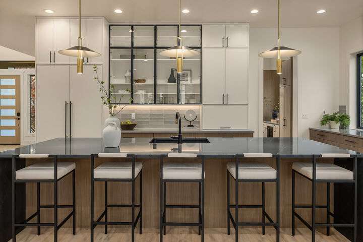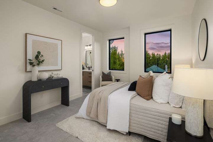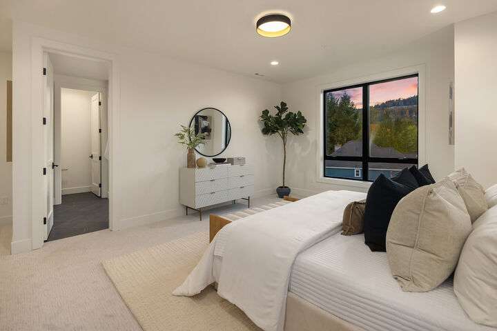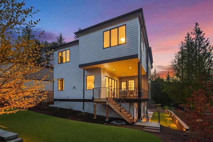 Perched above Issaquah’s lush tree line w westerly views, this newly built Veristone Homes balances modern elegance w natural tranquility. A grand entry opens to sunlit interiors illuminating wide-plank oak floors. The chefs kitchen impresses w an 11ft double waterfall island, Hestan range w pot filler, Monogram appliances, & full scullery, inviting gatherings & quiet moments alike. Downstairs, herringbone floors flow through the spacious lower level featuring media room & studio w 2nd kitchen & private, no-stairs entry—ideal for guests or extended living. Upstairs, 4 ensuites include a serene primary suite w heated floors, soaking tub, & windows framing peaceful green vistas. Turf yard, covered patio, & refined finishes complete this home.