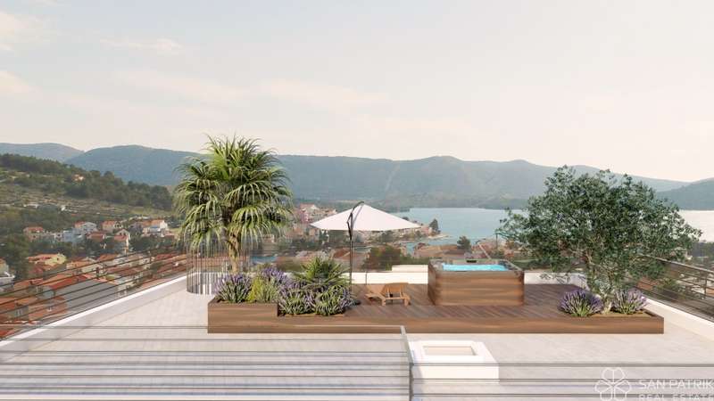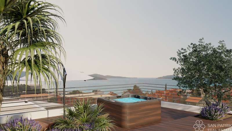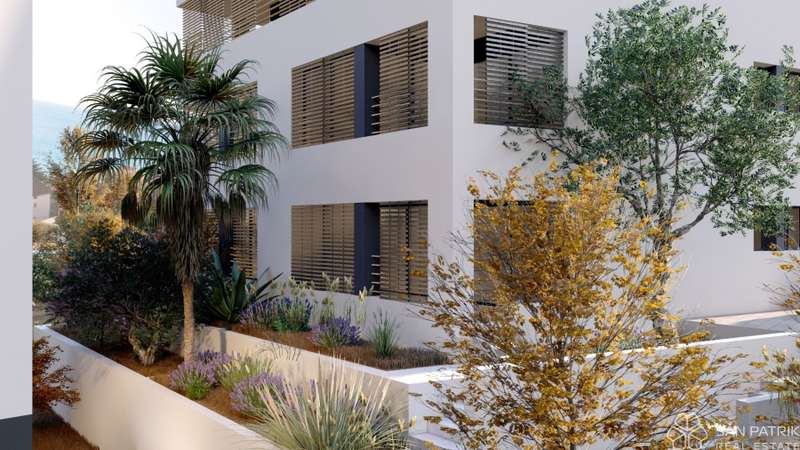 Luxurious and modern apartments for sale in a quiet part of Zaboric, 150 meters from the beach, in a new building - a residential building with 5 apartments. Attractive location in a quiet Dalmatian town, 10 km from Šibenik and only 150 meters from a beautiful beach with palm trees.