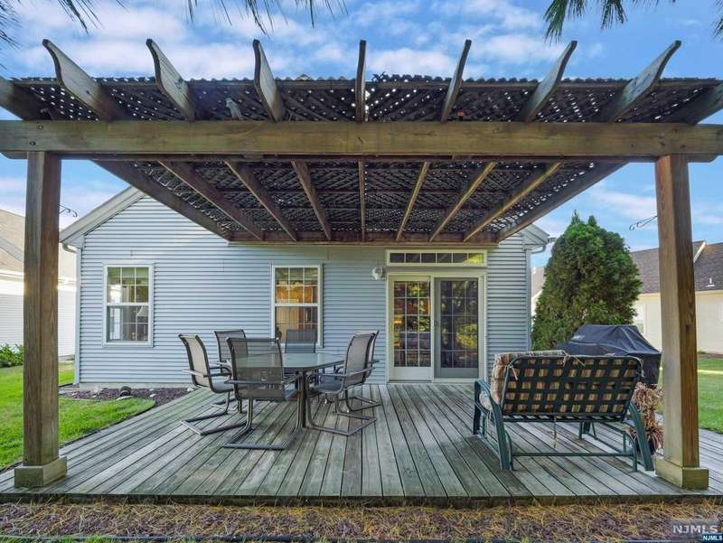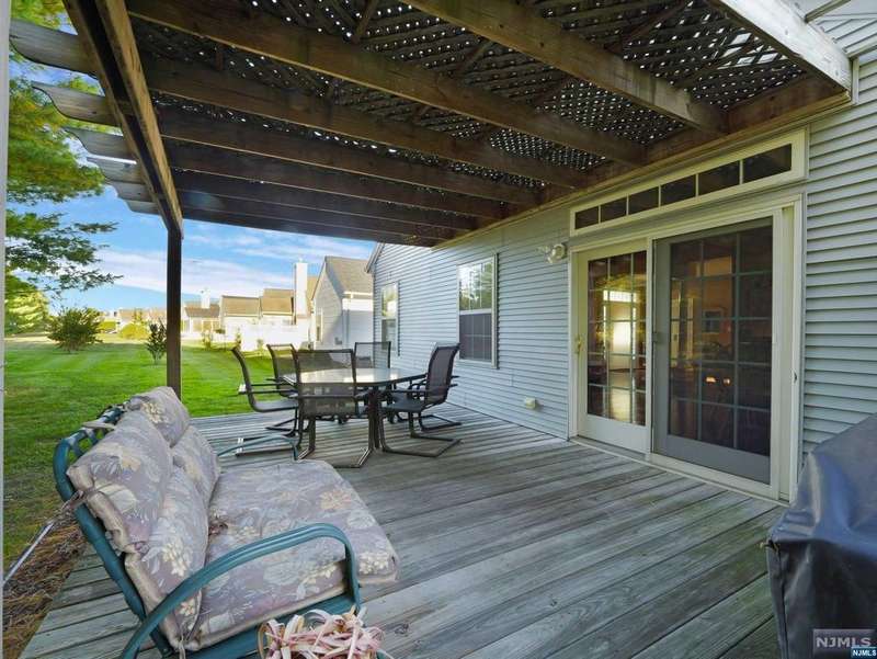 Welcome to this charming 2-bedroom, 2-bathroom ranch in the 55+ Renaissance Community. The inviting entry foyer leads into an open-concept living space with elegant columns and vaulted ceilings. The living room provides a relaxing area for guests, while the adjacent dining room is perfect for intimate meals or entertaining. Sliding glass doors open to a pergola-covered deck, ideal for outdoor gatherings. The eat-in kitchen features custom cabinetry and a center island. The primary bedroom includes a vaulted ceiling, large closet, and en-suite bath. A second bedroom, bathroom, laundry room, and 1-car garage complete the home. Enjoy community amenities like pickleball, tennis, bocce, pools, clubhouse, and golf.