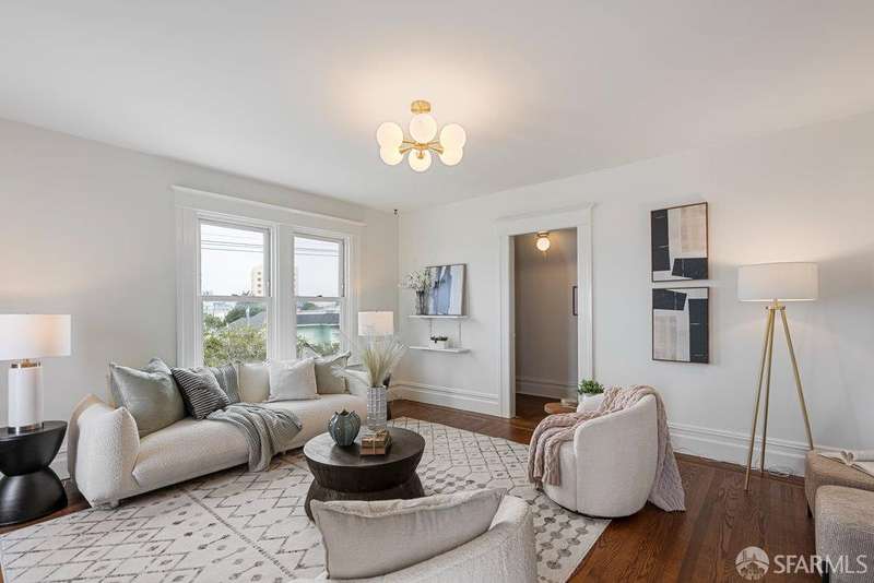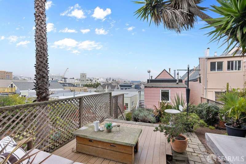 Location, Location, Location! Just one block from the vibrant Mission Street District filled with renowned restaurants, cafs, nightlife, and parks this charming 2-bedroom, 1-bathroom home offers the best of San Francisco living. Enjoy Precita Park 1 block away, with Bernal Heights Park rising just above, where green space feels like an extension of your own backyard. Set in a quaint and easy-going two-unit Edwardian building, this top floor unit features city views from your living room window, an updated kitchen, one-car parking, and charming personal backyard space overlooking the city skyline, perfect for morning coffee, a small garden, or a quiet retreat. With low HOA dues and a relaxed community vibe, it's an ideal blend of character and convenience. Whether you're looking for neighborhood charm, close by amenities, or access to some of the city's favorite outdoor spaces, this home delivers it all.