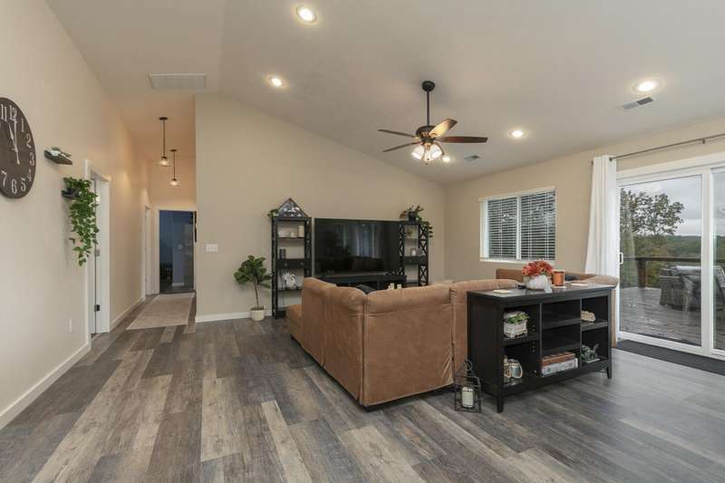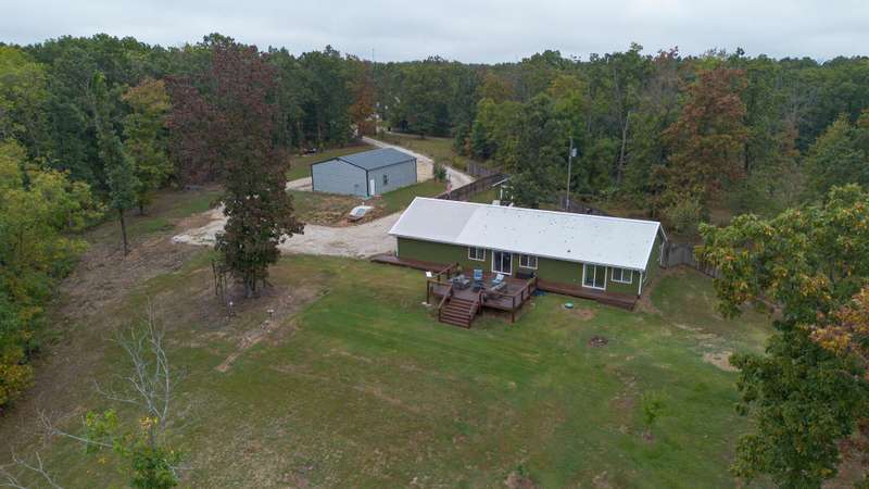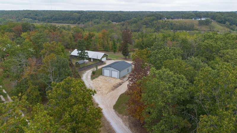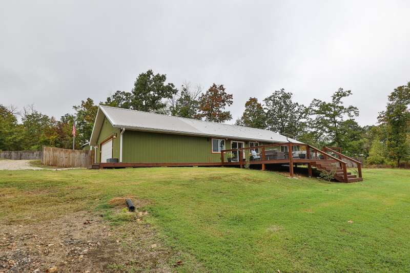 This custom-built home on 7.1 acres offers the perfect blend of modern comfort, functionality, and country living--just 20-25 minutes from South Springfield. Inside, you'll enjoy an open floor plan with a spacious kitchen featuring granite counters, bar seating, under-cabinet lighting, and vaulted ceilings. Luxury vinyl flooring and tile flow throughout, complemented by a primary suite with a walk-in shower, oversized closet, and sliding door leading to a large back deck overlooking the property and serene pond.Recent 2025 upgrades add tremendous value: a 30x40 shop with electricity, a 12-person in-ground storm shelter, a circular driveway, and a new closet in the 3rd bedroom, now making it a true conforming space. The oversized 2-car garage (30x22) includes shelving, plus a newer water softener and all kitchen appliances--including the refrigerator--will convey. Newly installed septic leach lines keep utilities efficient, while established trails across the acreage invite outdoor exploration.Whether you're seeking a private retreat, a homesteading opportunity, or a home designed for entertaining, this property offers both beauty and practicality in a convenient location.