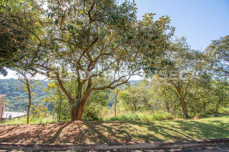 Terreno declive, sem vizinhos de fundo, vista permanente para o lago e para mata, à venda no residencial Vila Velha. O imóvel tem frente ampla e fica em rua sem saída, próximo da portaria.