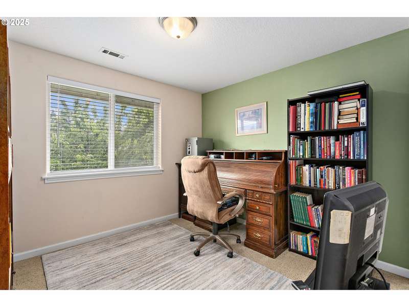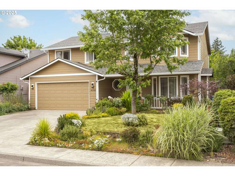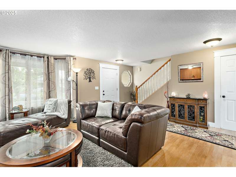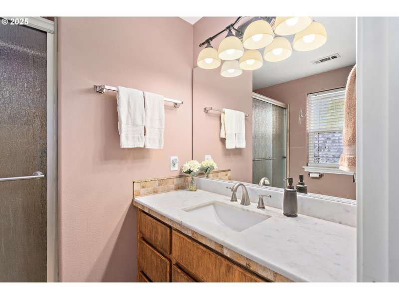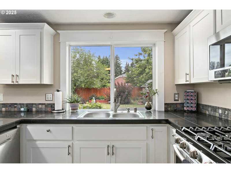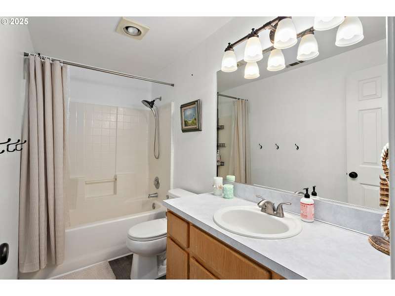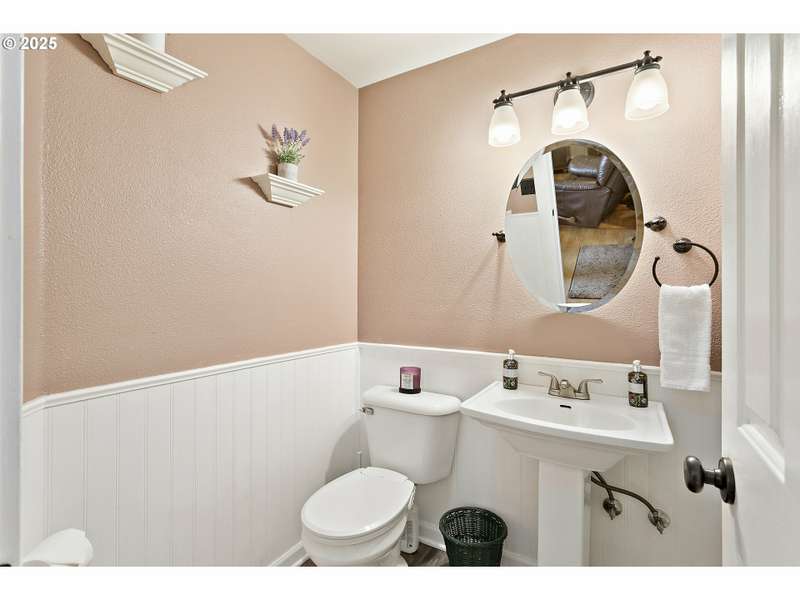 NEW PRICE REDUCTION! Welcome home to this rare 5-bedroom, 3-bathroom gem in the desirable Edwards Manor! As you step inside, you'll be greeted by a spacious living room featuring a cozy gas fireplace, a charming bay window, and custom walnut-finished built-in cabinets. The main level boasts durable laminate and LVP flooring throughout.The kitchen is a chef's dream, complete with slate tile countertops, a gas range, stainless steel appliances, and a convenient pantry. You'll also appreciate the newly added walk-in shower in the 3/4 bathroom on the main floor.The luxurious primary bedroom offers engineered hardwood floors, a bay window, a walk-in closet, and a private bathroom with a beautifully tiled walk-in shower.Upstairs, the large 5th bedroom provides versatile space, ideal for use as a second primary suite, a bonus room, or a theater room. Step outside to your expansive and private backyard oasis, perfect for entertaining or relaxing. Enjoy a large deck, pavered areas, fruit trees, rose bushes, raised garden beds, and a shed for extra storage. With a partial view of Mt. Hood from the upper level, the outdoors is truly an extension of your living space. Stay cool with central A/C. Located in the Union High School district, this home is just minutes away from local shops, restaurants, and the scenic 56-acre Pacific Park. No HOA.