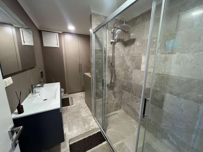 The apartments are designed with comfort in mind, featuring shower cabins, steel entrance doors, built-in kitchen sets, balconies, en-suite bathrooms, terraces, laundry rooms, central satellite TV systems, underfloor heating, open and closed-plan kitchen alternatives, sauna, Turkish bath, and PVC window systems.