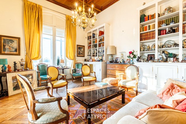 With an inverted lifestyle, the porch with its majestic cut stone staircase and its arched transoms reveals an entrance hall with a period cement tile floor, itself revealing the living spaces. The living-dining room with its parquet floors and its molded oak coffers on the ceiling offers a living space capable of accommodating a stove or a fireplace existing at the time with a magnificent ceiling height. Two other rooms are converted into a living room-library and bedroom, both decorated with marble fireplaces and a bathroom. A kitchen with old-world charm with multiple layout perspectives completes this level. On the lower garden level, the sleeping areas offer three beautiful bedrooms and an office. A bathroom, a shower room and a toilet supplemented by a laundry room and a boiler room area with water point offer autonomy with a door which gives access to the garden, thus allowing you to enjoy the garden or the sea in complete quietude.
