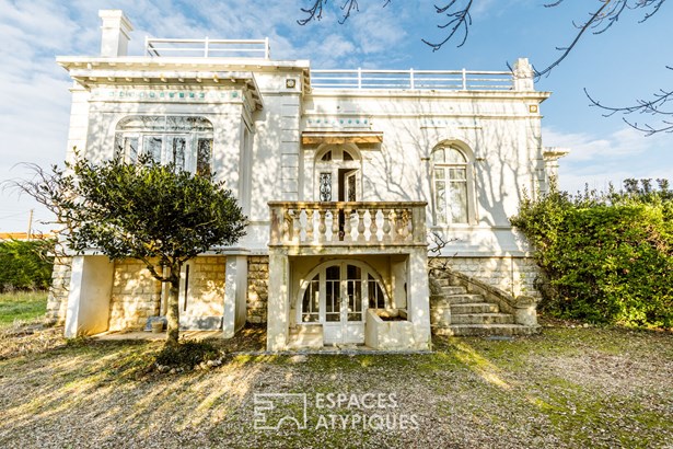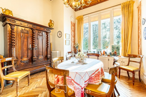 Like a viewpoint, the villa offers a breathtaking perspective and view from the flat roof, accessible by a small exterior staircase: an avant-garde and astonishing point of view for this elegant bourgeoisie. Unmissable and majestic, this sleeping beauty with its wooded garden offers a unique living environment and architecture awaiting projects to restore all its letters of nobility and its splendor of yesteryear.