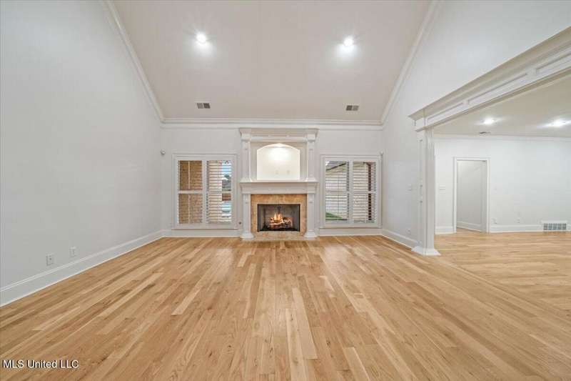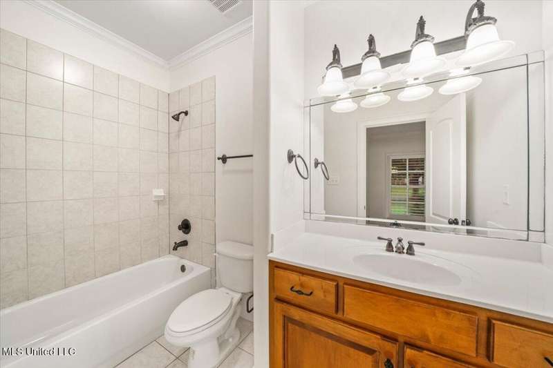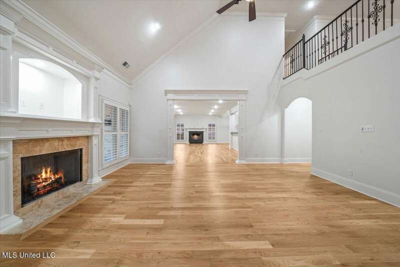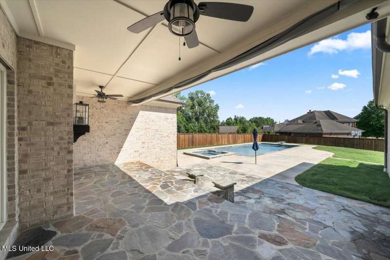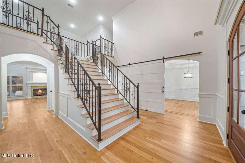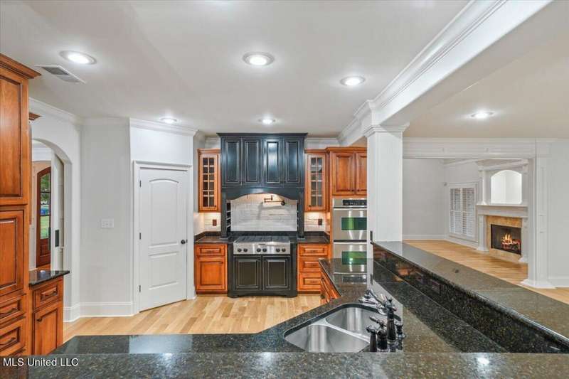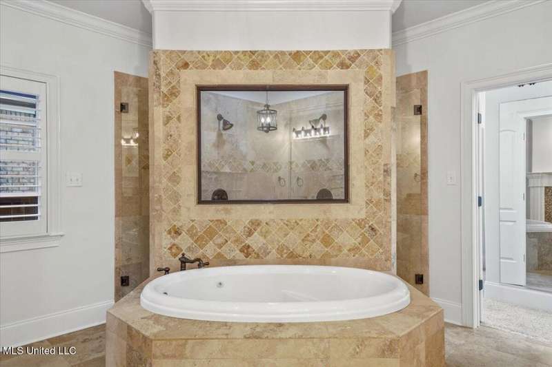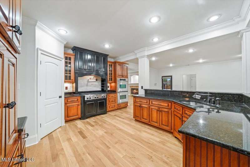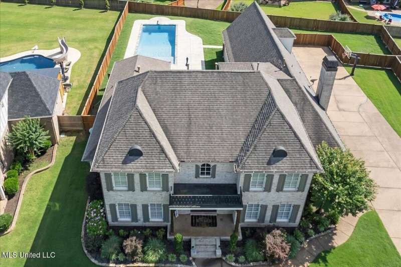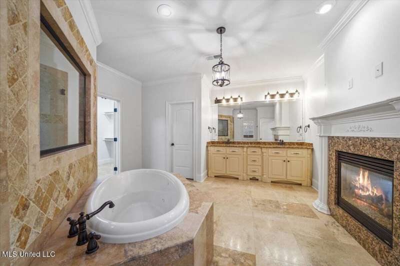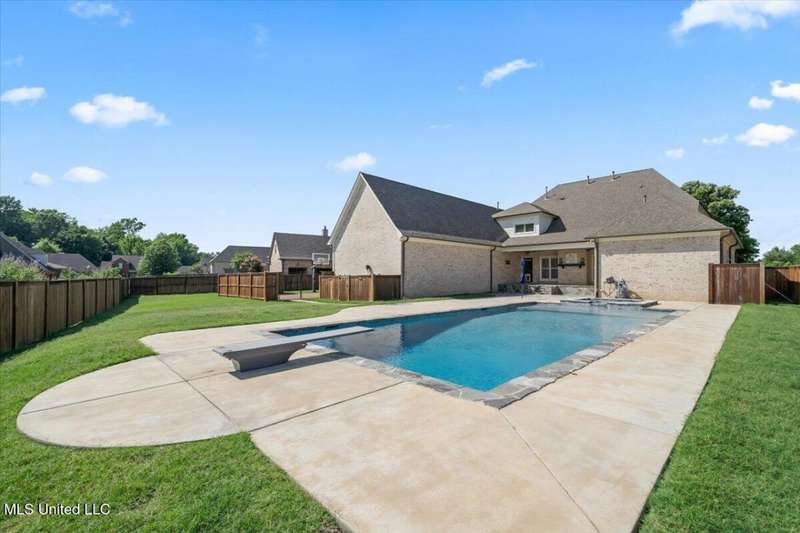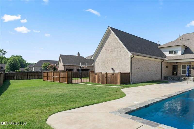 Welcome to Robinson Crossing, the premier custom community in Olive Branch, MS ~ Large, Updated Home loaded with high-end features and 5 Bedrooms, 3 Full Bathrooms, Two Half Baths, Bonus Room, Open Plan with 2 Living Spaces, Outdoor Living with New Pool, and 3-Car Garage on a 1/2 acre lot in the back of the neighborhood ~ RECENTLY Updated with New Interior Paint ~ Impressive 18 Foot 2-Story Entry with heavy trim, Nail Down Wood Floors, and a wide, commanding double staircase ~ Opens to a Formal Dining (or home office) with Barn Doors, Wood Floors, Tray Ceiling, Crown Molding, Trim, Plantation Blinds ~ Wet Bar - Butler's Pantry leads you to a Vaulted Great Room with Ceiling Fan, Wood Floors, Center gas FP, Crown Molding, and 4 windows with plantation blinds offering great views of the Rear Covered Porch and Pool ~ Big Chef's Kitchen with Walk-In Pantry, Commercial Kitchen-Aid 6-Burner Gas Cook-Top, pot filler, tons of custom cabinets, drawer stacks, spice racks, brick backsplash with under-cabinet lighting, Double Wall Ovens, recessed lighting, 2 sided L-Shaped Island with Granite Bar, and Fridge Included ~ Kitchen opens to a nice Breakfast Area with 4 windows, upgraded lighting and a Hearth Room 2nd Living space with Wood-Burning 2nd FP, crown molding, recessed lighting, and alternate stairs to a private multi-purpose Media Room with Surround Sound and projector screen (could be Bedroom 6) ~ Just off the Hearth Room find a Mud Area with Cubbies and a large Laundry Room with Granite Folding Counter, Sink, Upper & Lower Cabinets, hanging rod, and Broom Closet ~ Primary Bedroom has a security keypad, tray ceiling, crown molding, recessed lighting, ceiling fan and a 2-sided FP ~ Primary Bath with Travertine Floors, Dual Granite Vanity with Drawer Stack, Center Jetted Tub, Walk-Thru Shower with Frameless Glass, Dual Heads and Seat, and the 2-Sided FP plus a large walk-in closet with his/her sides with wood shelves and cubbies ~ Bedroom 2 is on the first floor with a private bath ~ Upstairs find a HUGE Bedroom 3 (14 x 23) with 2 Ceiling Fans and a private bath ~ Bedrooms 4 and 5 are nicely-sized with Jack n Jill Bath in between ~ Outside find an updated Covered Porch with beautiful Arkansas fieldstone, Outdoor TV, Gas line to grill and an extended stone patio opening to an Inground Gunite salt-water pool with Hot Tub/Spa, Heater, Tanning Ledge, Jetted water feature, Diving Board and ample concrete patio around ~ Back Yard with room to play, full privacy fence with gate ~ Additional Features: Plantation Blinds throughout, Security System, Stereo Intercom, Nail Down Floors throughout the first level, Crown Molding entire first floor, Alternate Stairs, wood-tread stairs with iron rails, new flooring in Primary BR and BR 2, Exterior Security Lighting, Tech Shield Roof Decking, Walk-In Attic, Landscape Lighting, Stone Landscape Planters, Full Irrigation, Pet Door, Gutters, Basketball Goal, Community walking trails.