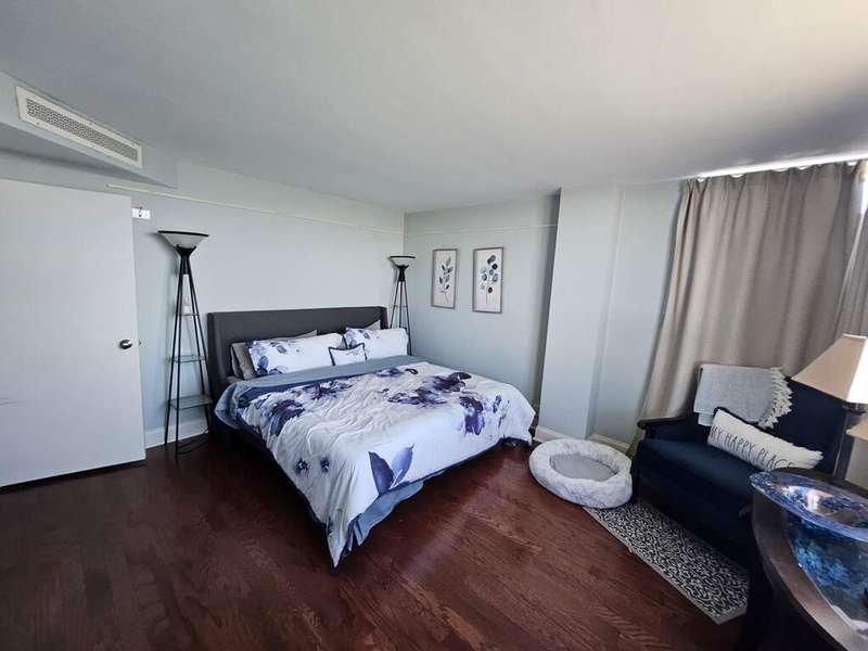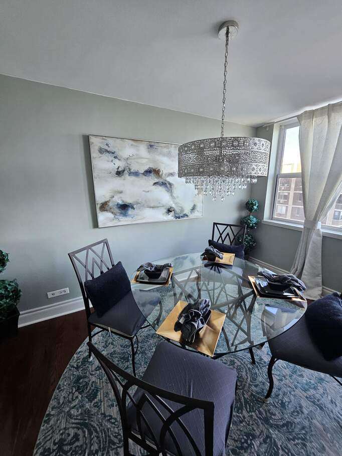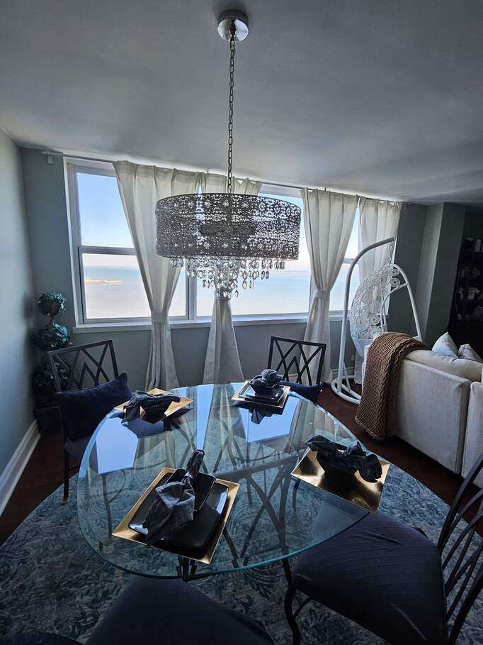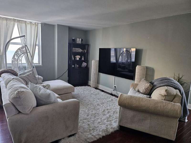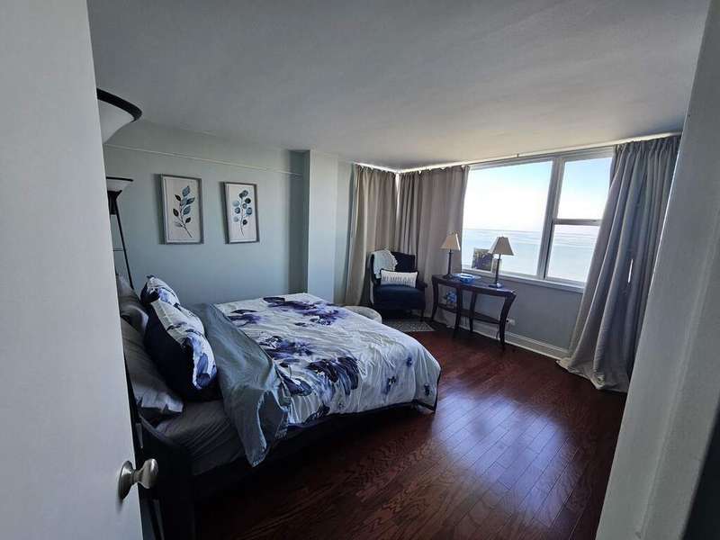 Come home to this recently remodeled FULLY FURNISHED 2 bedroom corner condo with stunning infinity views of Lake Michigan to the north & east from every room! This is truly a turnkey opportunity for the person who is looking for an in-town or someone who is looking for a new place but who doesn't want to buy all the furniture, sheets & kitchen stuff. This kitchen has everything you need; coffeemaker, toaster, pots & pans, serving/mixing bowls, dishes & flatware, cups, serving utensils, etc. The nearly-new F-P fridge & dishwasher (drawer style) plus the Bosch cooktop & wall oven compliment the spacious cherry custom cabinets & quartz countertops. All of the furniture you see will stay along with artwork & decor items. The king size bed & linens to fit it & the trundle bed also with linens will remain also . The full bath is located close to the bedrooms & the guest bath is conveniently close to the entertaining areas of the unit. Real HWF throughout have toasty throw rugs on them for those cold winter mornings. Shoreline Towers is a well-run building on the northeast corner of Rosemont & Sheridan and it overlooks Lake Michigan. Building amenities include 24/7 doorstaff, fitness center, party room, sun deck, bike storage, laundry room, and a receiving room. There is excellent access to the beach, parks and Loyola is right around the corner. It's easy to get to the city, Evanston and just about anywhere on convenient public transportation. Whole Foods is a short walk or bus ride away, as is a Target store. The Edgewater neighborhood offers a wide variety of restaurants, shops, pubs. Rent includes TV, Wi-fi, central heat & air conditioning and more! The electric bill comes to you. This is a pet-free & smoke-free unit that's available now.