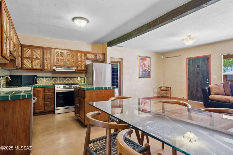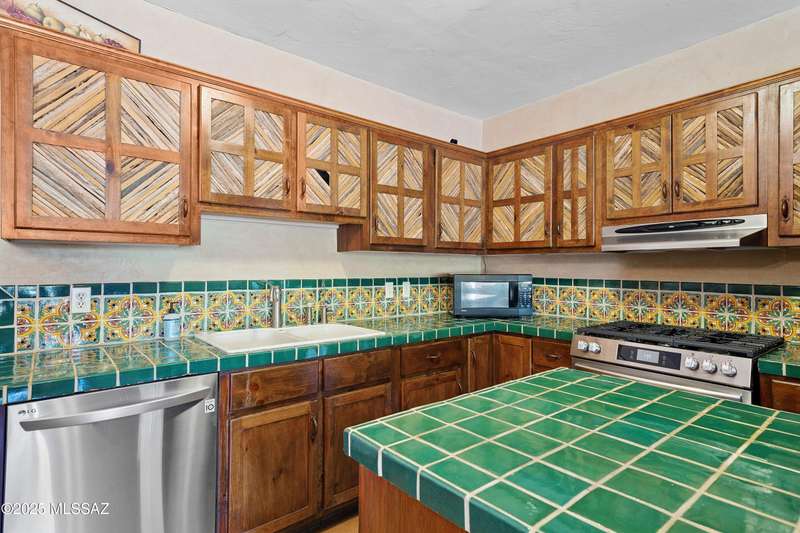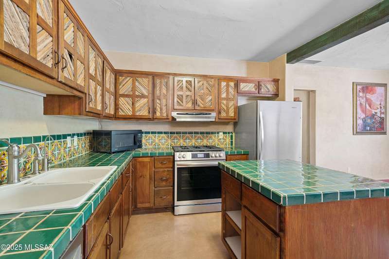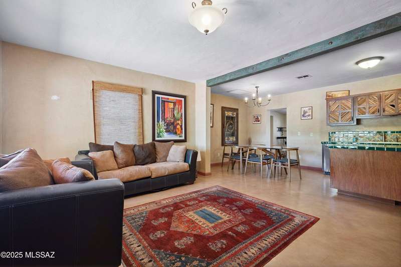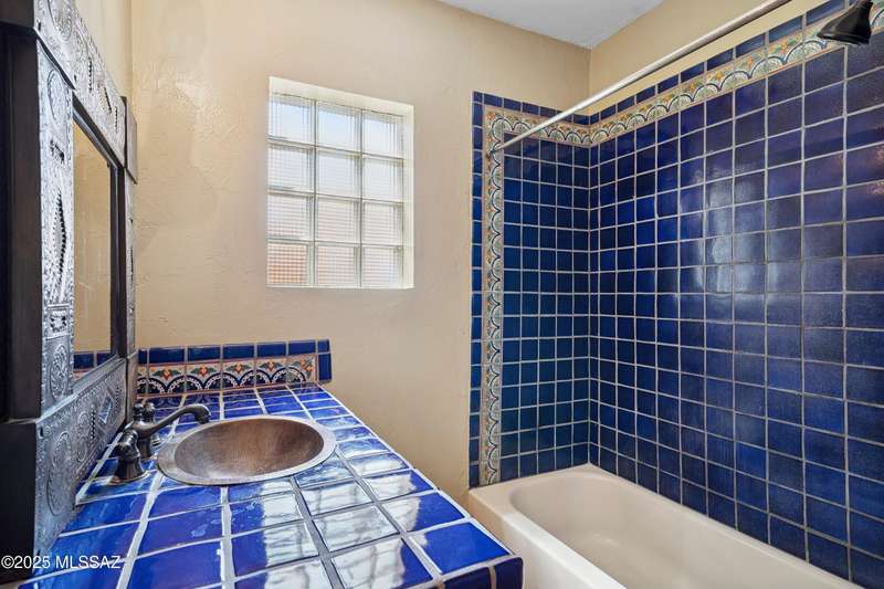 Full of character and artistic touches, this updated Blenman-Elm home sits on a spacious corner lot in Tucson's charming historic district--just minutes from the University of Arizona and Banner Medical Center. The interior features a warm mix of color, texture, and style, blending original details with thoughtful updates.Highlights include Modern Master bath with Jacuzzi tub, stainless steel appliances, custom Saguaro rib cabinetry, and bathrooms and kitchen with colorful Mexican tile accents. The professionally landscaped yard offers room to grow or personalize. Owned solar system, a new garage--a rare find in this area--both add value and convenience.