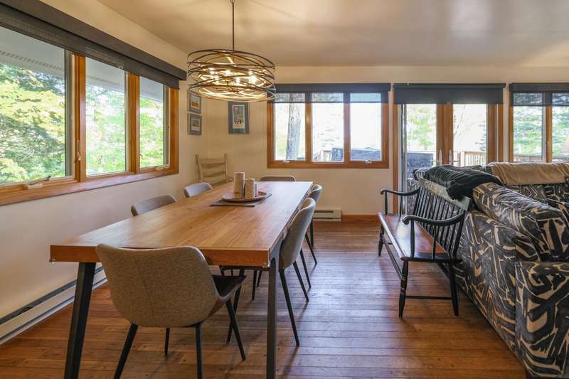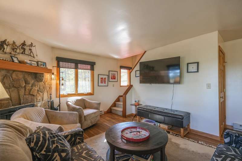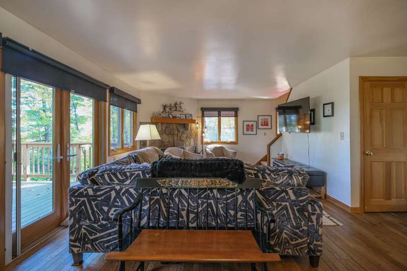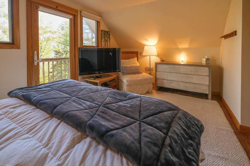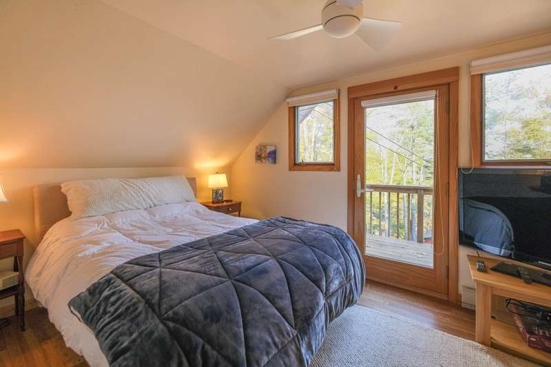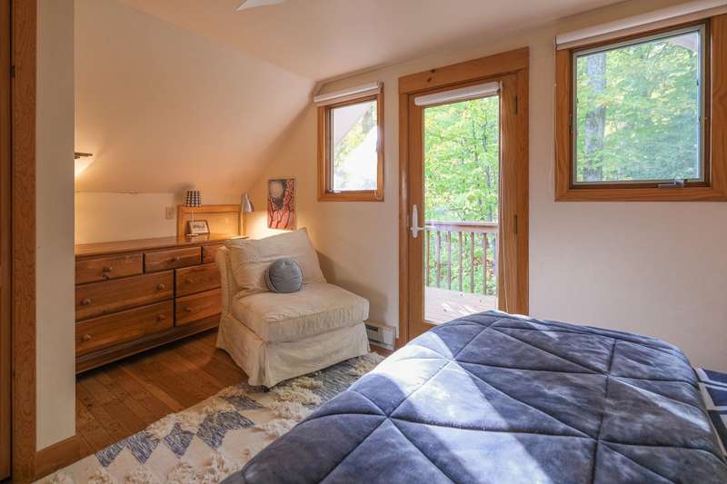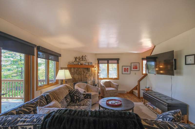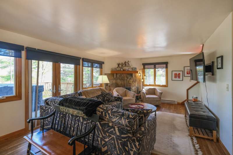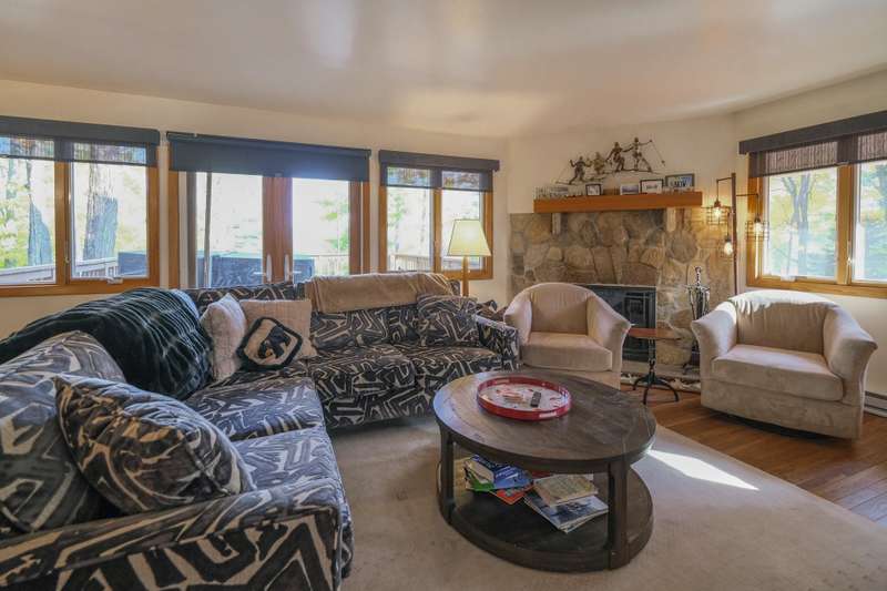 Escape to this spacious 5-bedroom, 3-bathroom home nestled on Okemo Mountain, offering the perfect blend of comfort and convenience. The inviting lower level welcomes you with a cozy family room featuring a two story, wood-burning fireplace, two bedrooms, and a full bathroom ideal for guests or a private retreat. The main living area on the second level boasts an open kitchen and dining area, perfect for gathering after a day on the slopes. Relax by the wood-burning fireplace in the living room or step out onto the porch to enjoy the hot tub, overlooking the serene mountain surroundings. A bedroom and a half bathroom on this floor adds convenience. The top floor offers two additional bedrooms, each with its own private balcony, and a shared full bathroom. With the deeded slope access just a short distance down the road, this home offers the ultimate mountain living experience. Whether for a cozy family getaway or entertaining friends, this Okemo retreat has it all. Most importantly rea