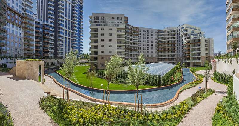 The mega project offers 1, 2, 3, and 4 bedroom type options. The apartments are distributed into open or closed-plan kitchens, en suite bathrooms, and balconies. The luxe apartments are equipped with built-in kitchens, a floor heating system with a heat meter, satellite TV, and private storage areas.