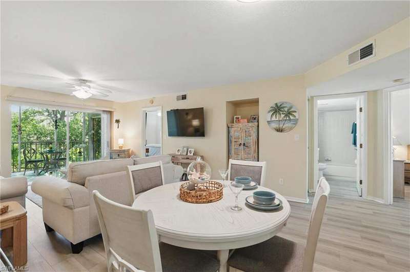 MOTIVATED SELLERS!!! WELCOME TO EASY LIVING IN THE HEART OF SUMMERLIN TRACE! This beautifully updated 2nd-floor condo blends comfort, style, and location. Inside, enjoy an open layout with brand-new flooring (2025), a reimagined kitchen with stone countertops, sleek cabinets, new sink, faucet, microwave (2024), and a rarely used dishwasher (2022). The spacious primary ensuite and guest bedroom are complemented by fully renovated bathrooms (2023) featuring new toilets, cabinets, stone counters, mirrors, and lighting. Step onto the screened lanai-redone in 2023-with sliders from both the living room and primary bedroom. Hurricane-rated windows, new blinds (2024), hot water tank (2023), keypad entry, and a new roof (2024) offer peace of mind. With in-unit laundry, elevator access, assigned parking, and low fees, it's the perfect lock-and-leave lifestyle. Just steps to the pool, pickleball, tennis, and Lakes Park's trails, gardens, and lakes, or take a short drive down to Fort Myers Beach or Sanibel Island! Call now to see it before it's gone!