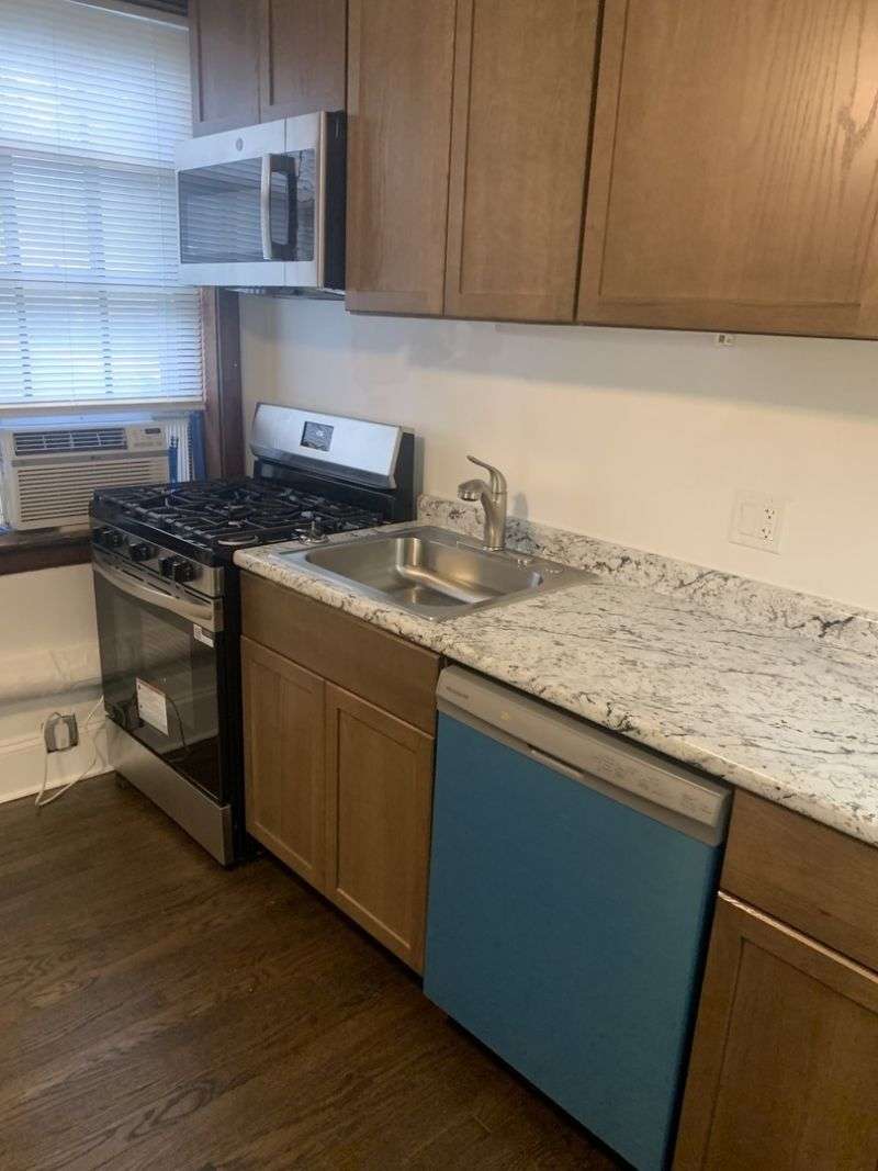 Edison Park FULLY RENOVATED spacious 1 Bed 1 Bath Unit for Lease. All New Kitchen. New Cabinets, New Kitchen Countertop, New Stainless Steel Appliances, Fridge, Microwave, Oven and Dishwasher. Beautifully refinished Hardwood Floors throughout, Newly Updated Bathroom, the Whole Unit has been freshly painted. Back Porch leads to private common backyard for summer time enjoyment. Clean Common Laundry room and common spaces. A very well maintained building. Walk to everything Edison Park AND Park Ridge has to offer, restaurants, bars, shops. Walking distance to Metra. Easy Street Parking. No Dogs.