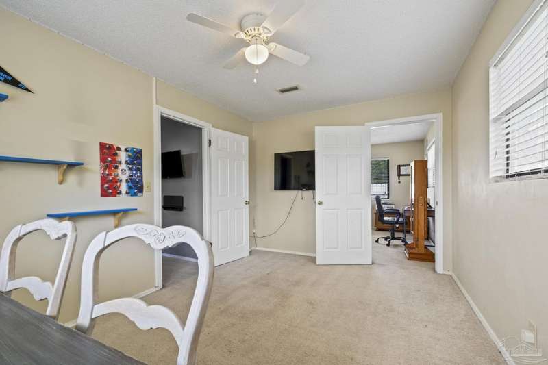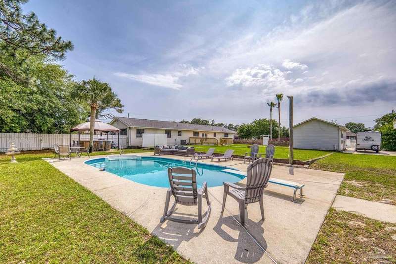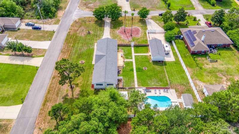 BACK ON THE MARKET DUE TO NO FAULT OF THE SELLER! This beautifully maintained 2,106 sq ft conventional, site-built home-not manufactured or modular-sits on a spacious .69-acre corner lot. It offers the fantastic blend of functionality, flexibility and long term value with 3 bedrooms, 2 bathrooms, a 2-car garage and a detached garage that has an adjoining flex space. The home is full of thoughtful features-including an assumable loan and a flooring allowance offered by the motivated sellers. Built in 1991, the main home features light wood-look LVP flooring in the living areas and plush carpet in the bedrooms. A flexible bonus room makes a great home office, gym, or playroom. The bright kitchen includes white cabinetry, stainless steel appliances, and a breakfast bar ideal for casual dining. The large laundry room adds everyday convenience, while the spacious primary suite features room for a sitting area and a private ensuite bath. The detached studio style space is close to the pool and would be fantastic for a hobbyist, craft enthusiast, or someone looking to create a custom man cave. It even comes fully equipped with a shower, its own hot water heater and a garage space. Outside, enjoy your own backyard oasis with an in-ground saltwater pool, poolside bar, wooden deck, and patio-fantastic for relaxing or entertaining. The full sprinkler system keeps the lush lawn and landscaping vibrant, a riding lawnmower is included with the purchase of the property, and a private RV pad with electrical hookup sits discreetly behind fencing in line with HOA guidelines. A storage shed adds even more functionality. Located in a resort-style community with a golf course, pool, game room, playground, and more. It's even close enough to bike to the intermediate school. This corner-lot gem offers peaceful living, exceptional outdoor space, and lifestyle-enhancing amenities-all ready to welcome you home.