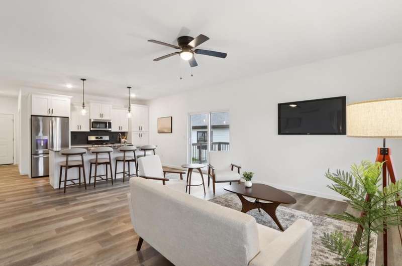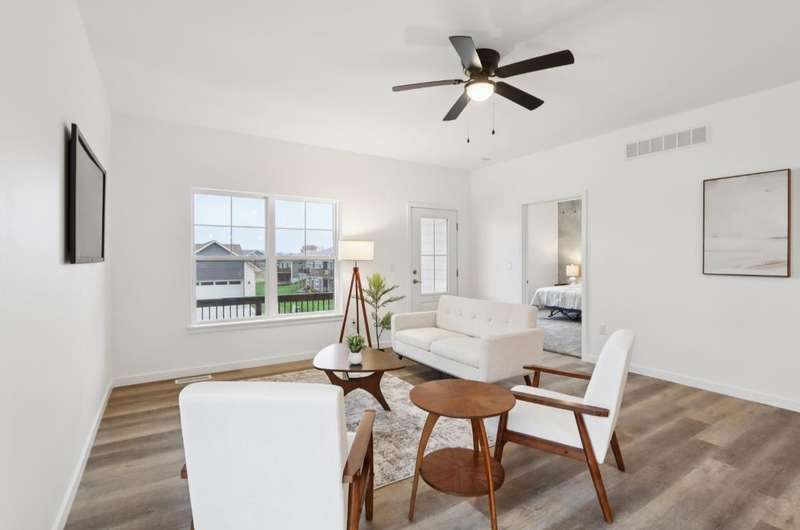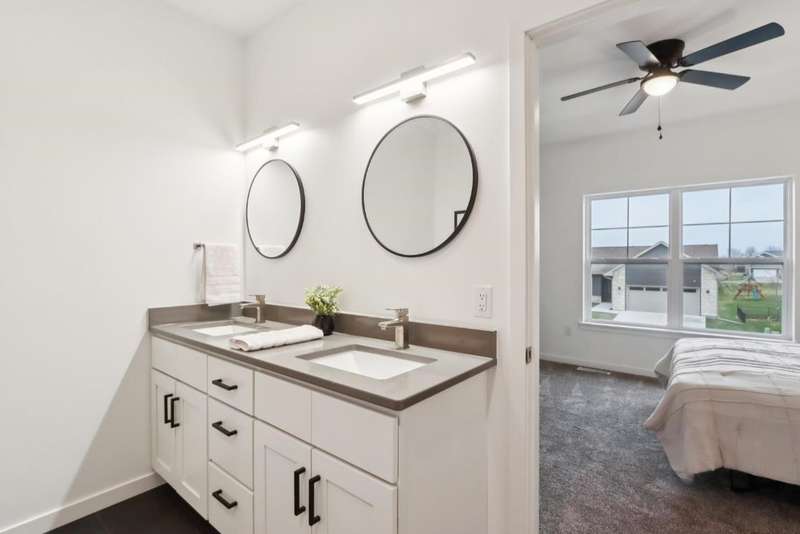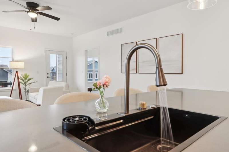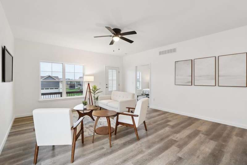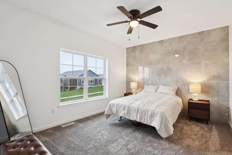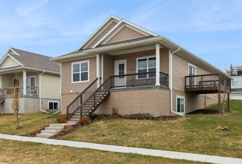 Super cute 5-bedroom, 3-bathroom, ranch layout with bright, open great room for entertaining. Zero entry from 22-foot-deep garage. Sit down on the natural wood bench just inside garage and take off shoes. Generous laundry room behind kitchen and off hallway. Minimalist “look” kitchen with GE stainless steel appliances and large (4’8” x 7’8”) concealed pantry. Bliote SS Waterfall Kitchen Sink Workstation with glass washer and more features. GE Stove/range with griddle and broil functions. GE Fingerprint resistant French door refrigerator with water dispenser. Quartz countertops and island with breakfast bar as well as dining space that opens onto wood deck. Lovely primary suite with unique tiled accent wall, generous walk-in closet and divided primary bathroom. Downstairs family room is generous blank canvas with large windows and there are two bedrooms with a bathroom and large storage space. Two stall garage with extra workspace on the side, plumbed for a heater and pedestrian door that opens onto extra parking pad. Cute front porch for relaxing with a cup of coffee. Located in northeast Iowa City with quick access to I-80 right on the edge of town in a quiet neighborhood.