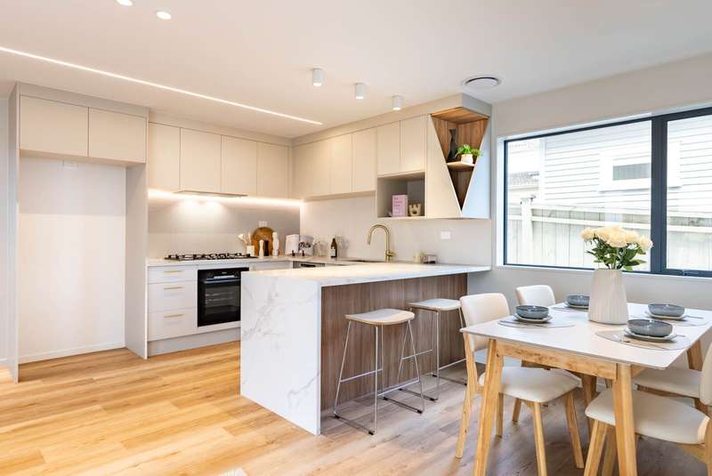 Nestled at the foothill of iconic One Tree Hill and just minutes from Royal Oak Shopping Mall, this crisp, contemporary freehold home is bathed in natural light and designed for effortless modern living in one of Auckland’s most sought-after pockets. Step inside to open-plan living that flows seamlessly to a sunny deck and landscaped garden – perfect for alfresco dinners or weekend unwinds. The sleek kitchen, with gas cooking and premium appliances, is made for both busy mornings and relaxed entertaining. Upstairs, three generous bedrooms and 3.5 stylish bathrooms offer space for all. The master retreat includes a walk-in robe and ensuite, while a study nook adds practical flexibility. With two living areas, central air con, internal garaging, and top school zones – plus Cornwall Park just moments away – this is easy family living, done right.