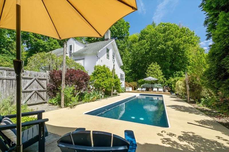 Beautifully updated turnkey mini estate on just under an acre offers all of the easy maintenance of a condo without the HOA. Nestled in the heart of Garrison, this 3-bedroom, 2-bath home offers 1,551 square feet of inviting, light-filled living space with a warm, open-concept layout full of character. Enjoy cooking and entertaining in the recently renovated kitchen featuring brand new stainless steel appliances, a breakfast bar perfect for casual dining, and direct views of the patio, pool, and lush perennial gardensideal for seamless indoor-outdoor entertaining. A cozy pellet stove anchors the living room, adding warmth and charm throughout the cooler seasons. The convenient first-floor bedroom and full bath offer flexible living options or home office use, while upstairs, the second full bathroom featuring soaking tub has been stylishly updated and easily shared between two sunlit bedrooms. Outside, your private oasis awaits, complete with private deck and heated in-ground saltwater pool, surrounded by mature landscaping full of unique specimen plants, thoughtfully selected for easy maintenance and year round enjoyment. Ideally located just five minutes from Metro North, Cold Spring village, hiking trails and one hour to NYC, this move-in-ready gem offers the perfect blend of storybook charm, convenience and natural beauty.