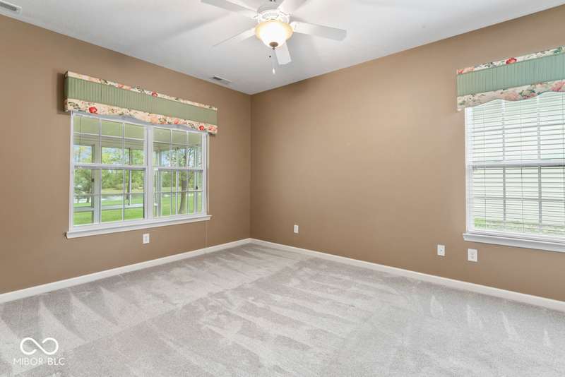 You will want to act fast on this wonderful low-maintenance home in Willow Lakes on one of the best lots in the neighborhood! This house is truly special with a large sunroom and a screened porch that overlooks the pond and fountain, mature pines and willow trees, creating privacy without feeling closed in. Enjoy a cozy two-way gas fireplace from the breakfast room or the living room. There is also a formal dining area and a breakfast bar with room for 4 barstools making large dinners a breeze. The primary bedroom and attached bath has two walk-in closets, double vanity sinks and a walk-in shower. The second bedroom has an attached bath with a tub/shower enclosure and a walk-in closet. Upstairs is a large bonus room (3rd bedroom) with a walk-in closet and half bath. The main floor has newer carpet, and both full baths have newer quartz countertops. Garage has an epoxy floor and a closet for the mechanicals. Gas Furnace is 5-years-old; water softener is 2-years-old. Roof is original, but in good shape. Irrigation system keeps the grass looking good. The HOA cuts the grass and removes snow in the winter. Great location close to Noblesville, Westfield, 146th and the new bypass will be just down the street. A short walk away from the Midland Trail that connects with the Nickle Plate and the Monon.