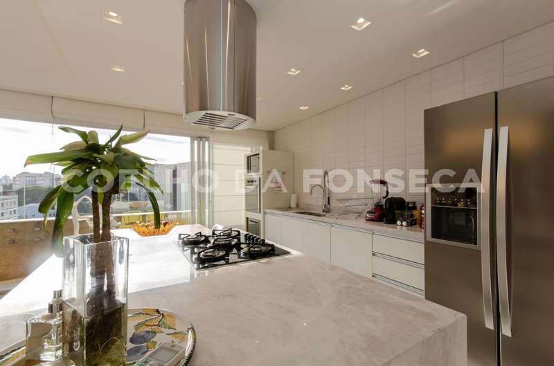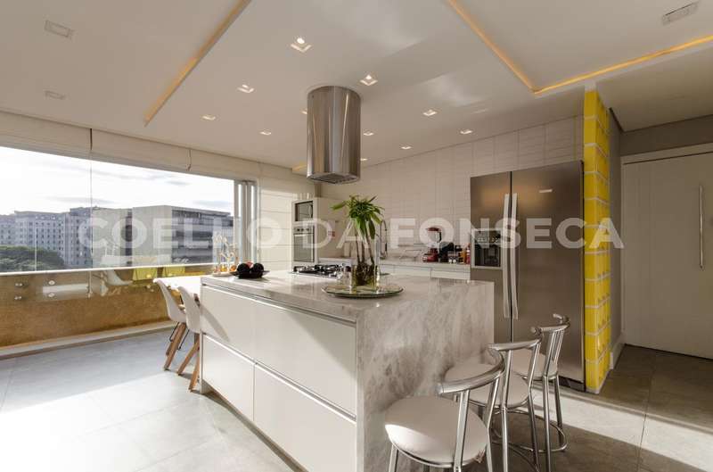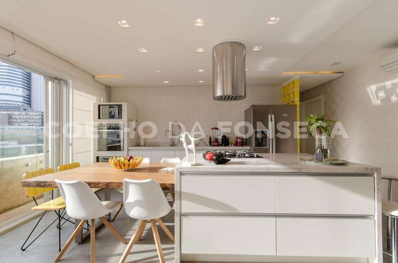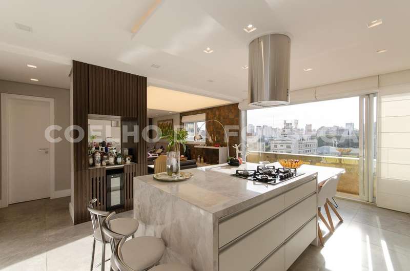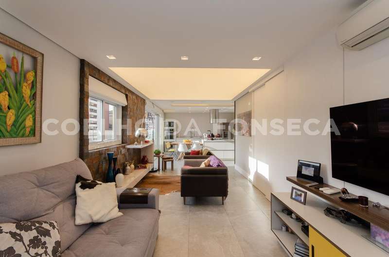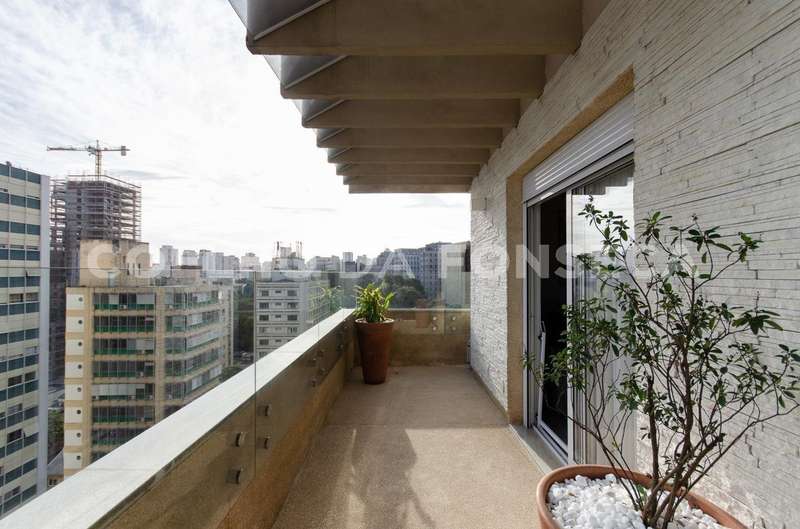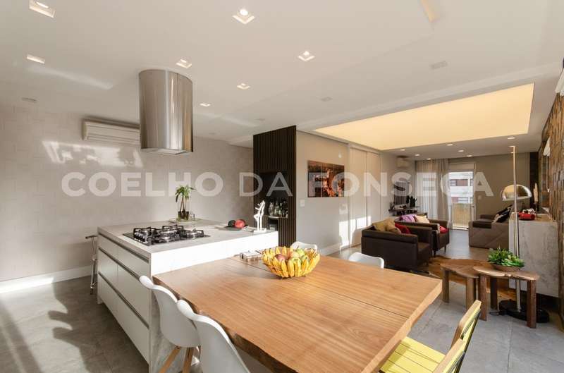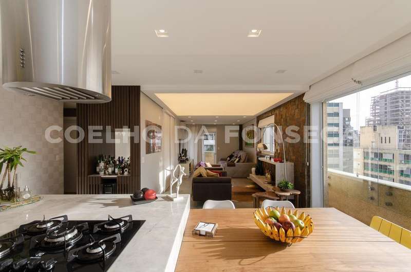 Cobertura penthouse funcional e criativa. A reforma valorizou a luz natural e a vista deslumbrante. As duas amplas suítes, uma com acesso ao terraço, possuem circulação fluida. O living integra-se ao terraço e à cozinha com ilha gourmet, coifa e cooktop. Complementam: um excelente home office e lavabo. Localização mais desejada nos Jardins.